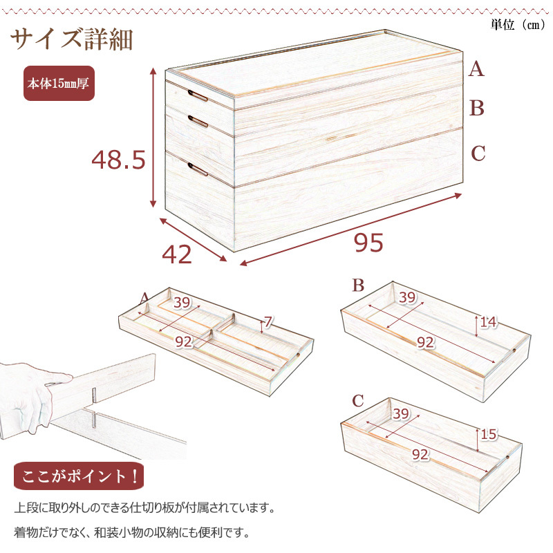 ■内寸:(約)幅92×奥行39×深さ(浅)7(中)14(深)15cm
