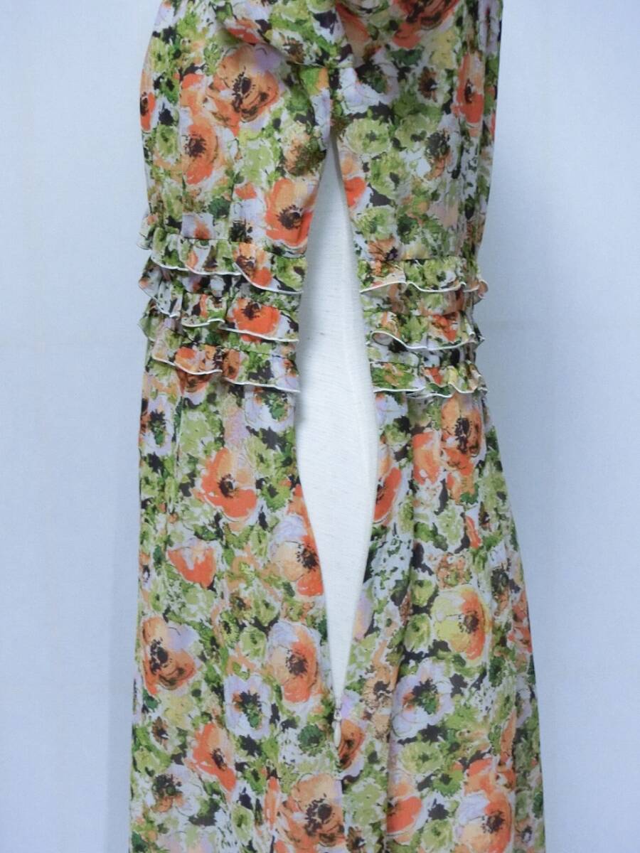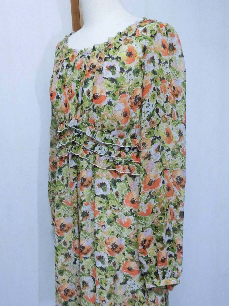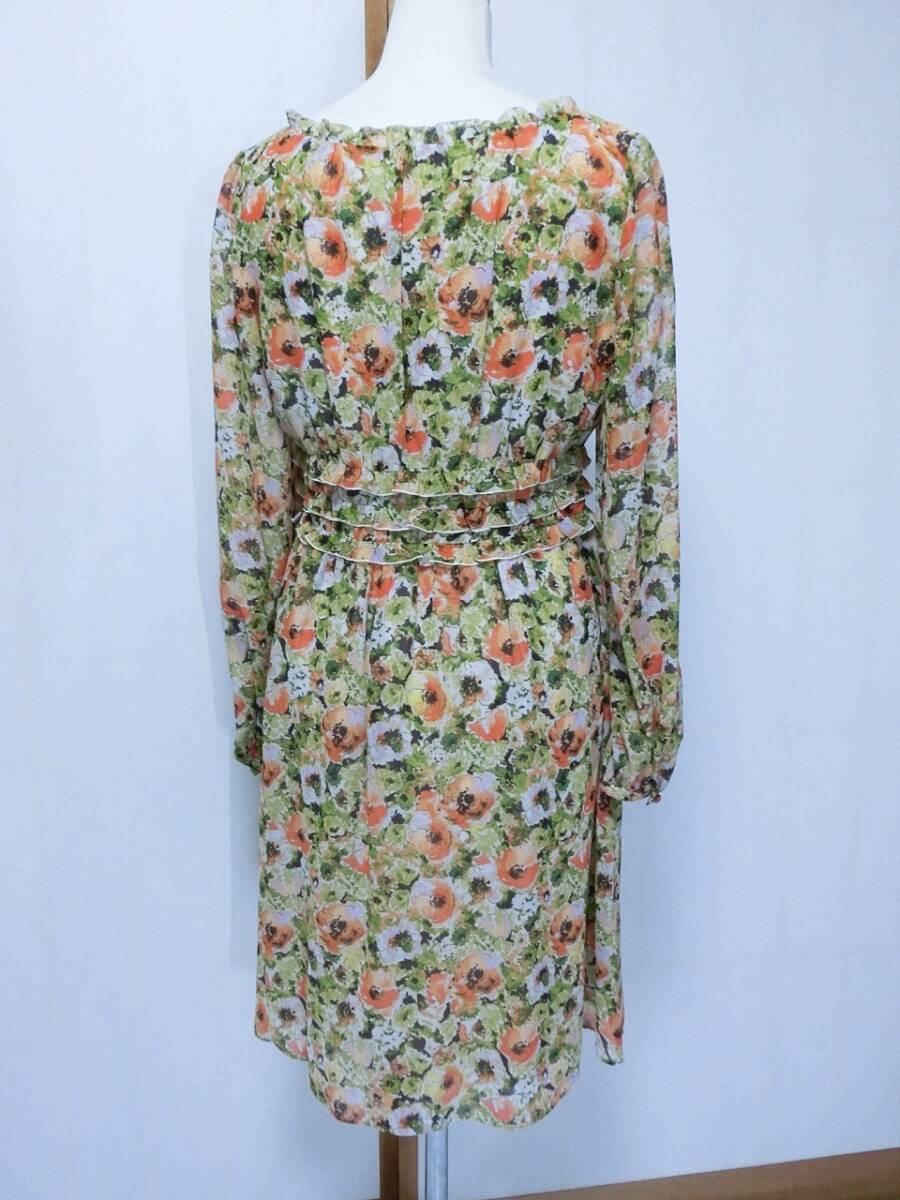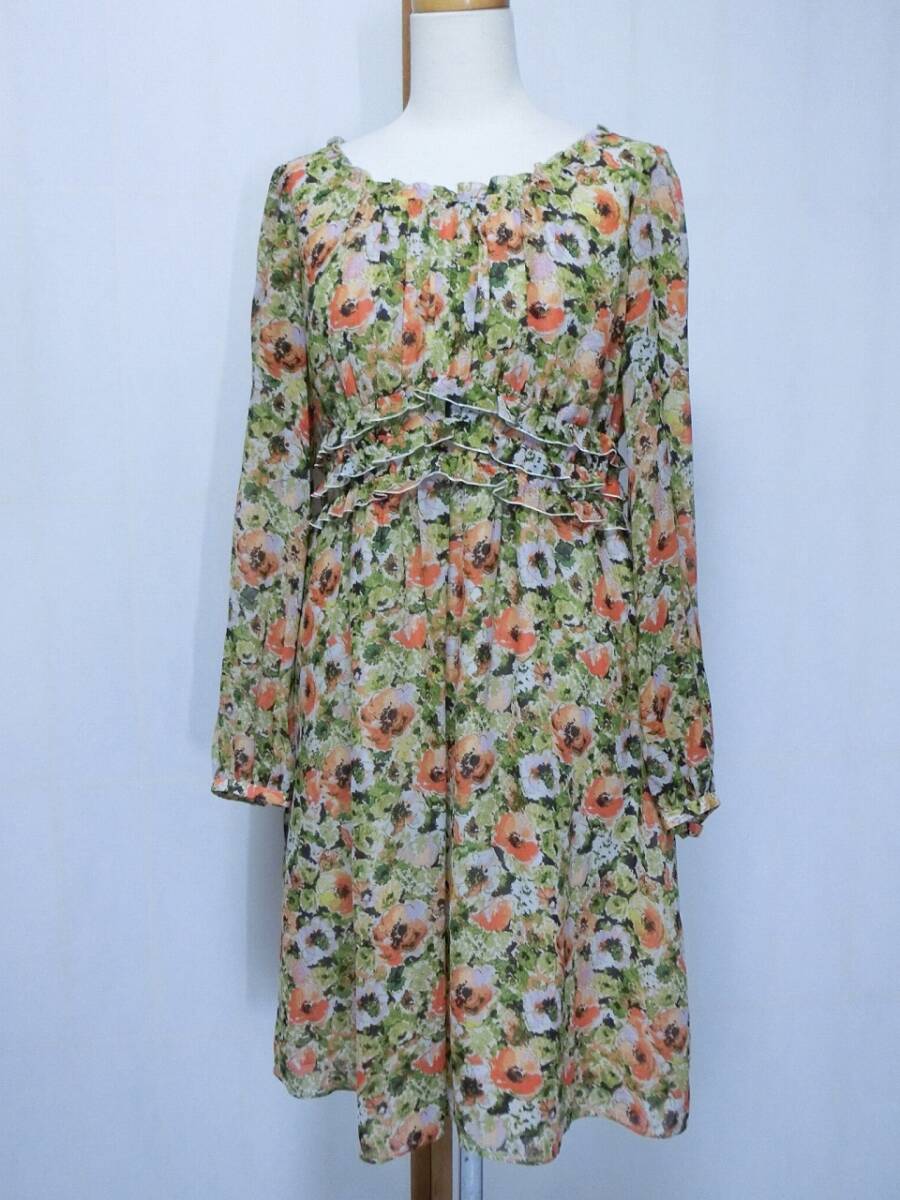★FRAGILE フラジール ベージュ地にオレンジやグリーンの花柄の長袖ワンピース 38★