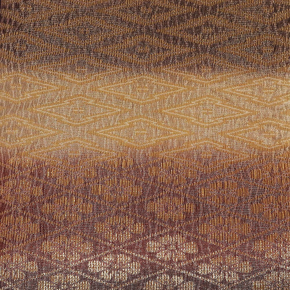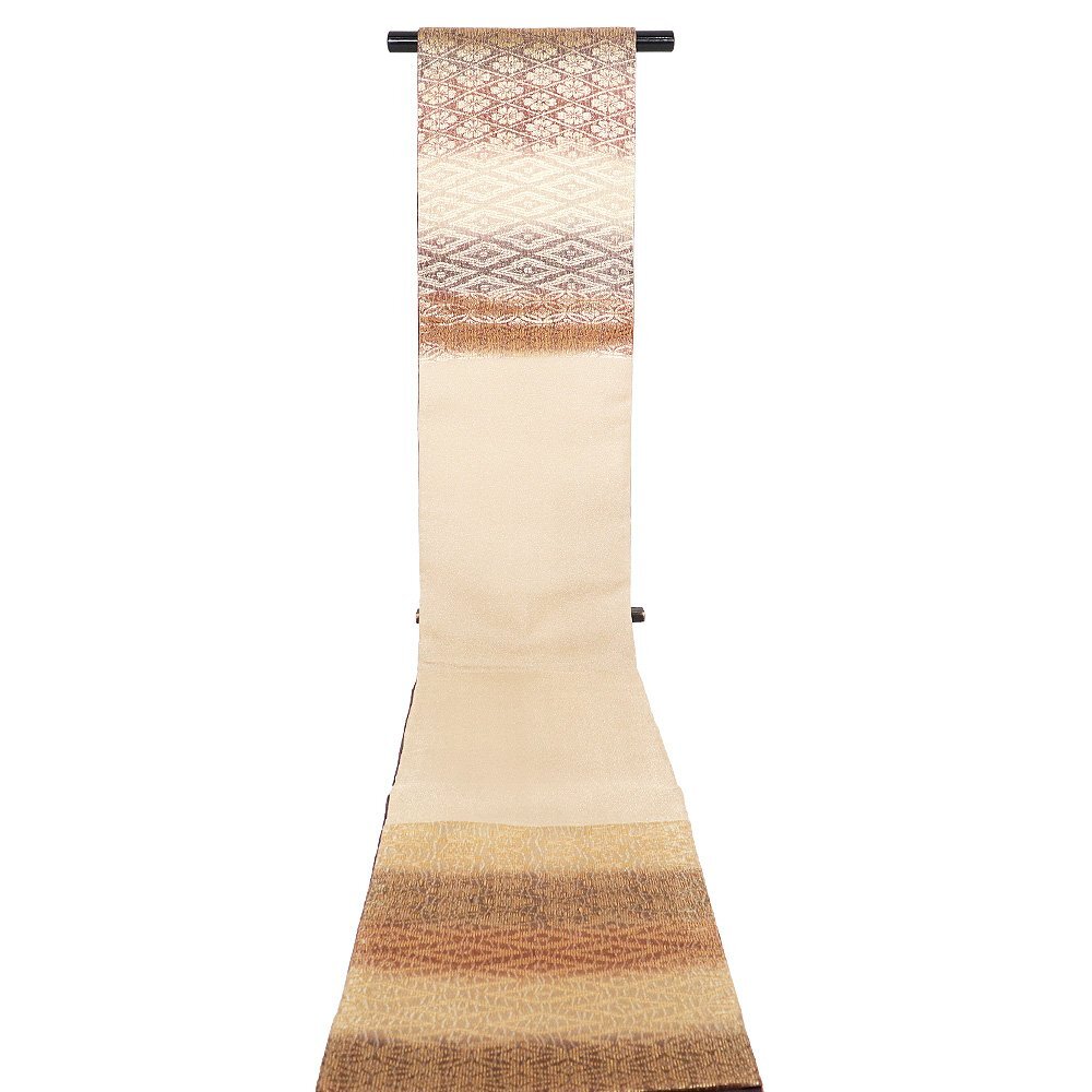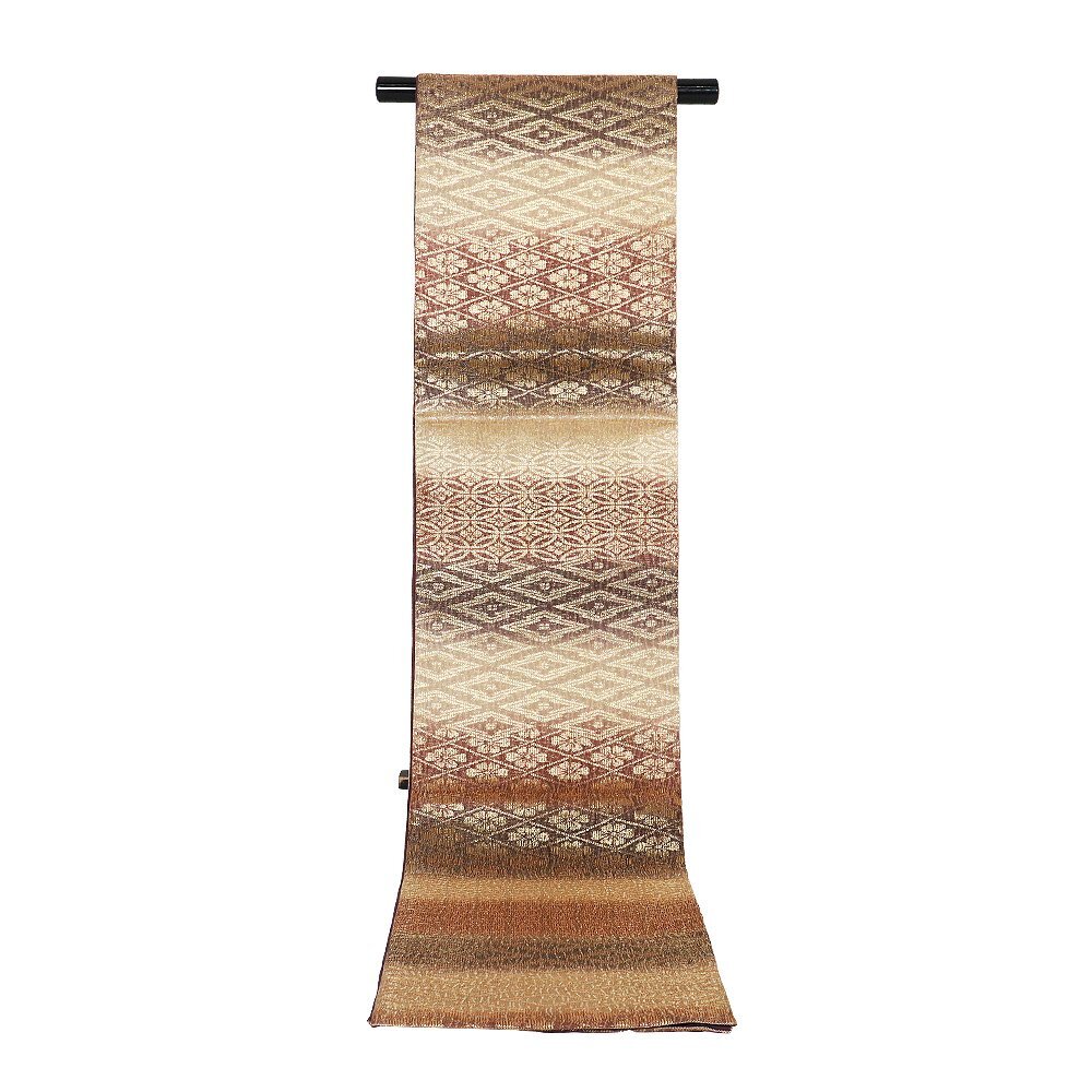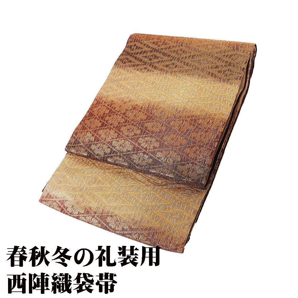 | 商品 | 西陣織袋帯 御倉織 金箔・小豆色・赤紫・薄緑・横縞・地 松皮菱・花菱文・七宝文 仕立て上がり |