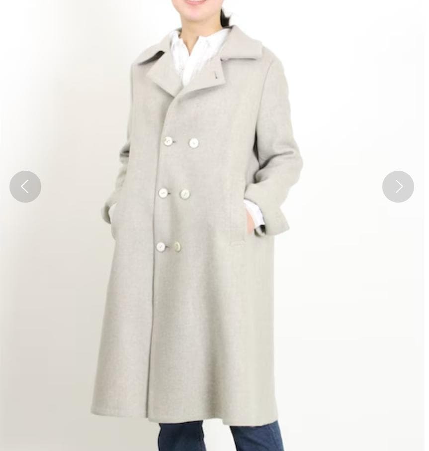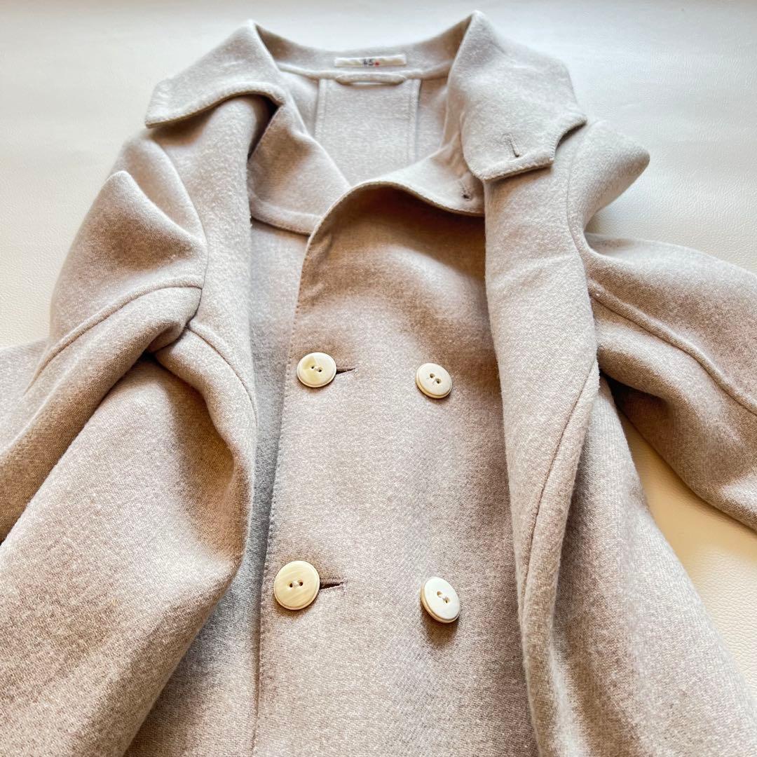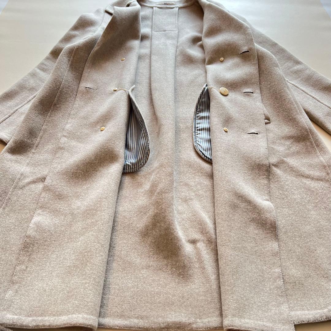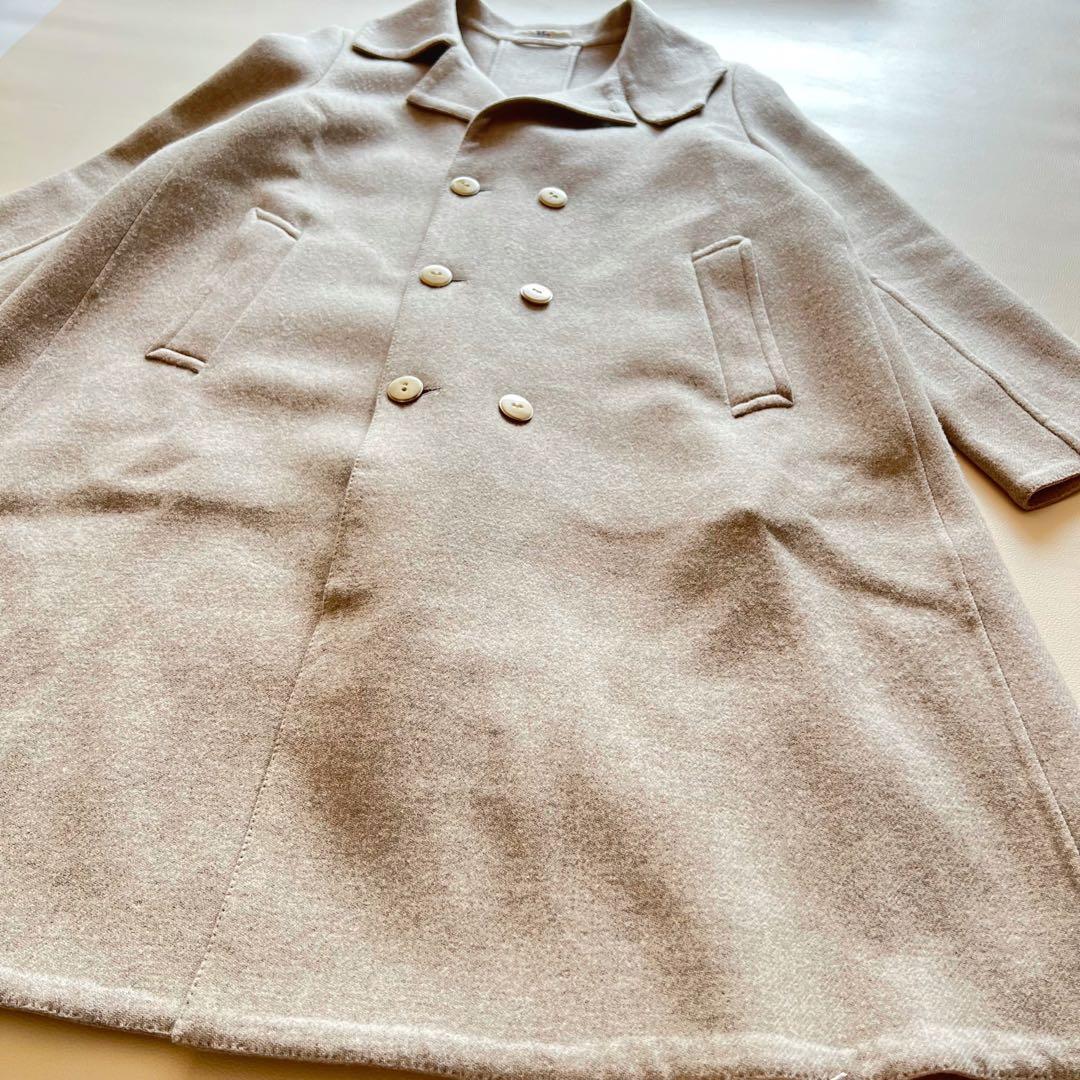 美品・希少 45R メリノ二重織フレアコート メリノウール リバーコート ロングコート ベージュ