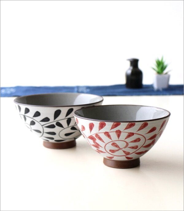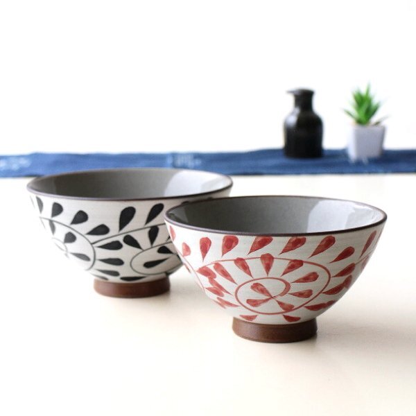 | 素朴な陶器の器に 胴(外側)のみ粉引釉を掛け 力強く大きく描かれた 蛸唐草模様のペアのご飯茶碗 昔からある伝統的な模様の蛸唐草 中心から放射状に広がる渦巻きは 太さや間隔、曲線の角度などに 微妙な変化が加えられ、 一見、同じに見える模様でも 一つとして同じものがないのも魅力 手に取ると胴(外側)の粉引釉のザラっとした手触りを ダイレクトに感じ取ることができ 見た目と手触り 両方楽しめる器です 商品名 : 粉引 タコ唐草 夫婦茶碗 商品番号 : skt3253 全体のサイズ(cm) : 大)直径12.5×高さ6.5 小)直径11.5×高さ6 重量 : 大)180g 小)150g 材質 : 陶器 使用方法 : 電子レンジ)× 食洗機)× オーブン)× 生産国 : 日本(波佐見) ※陶器の裏面は多少ざらざらとしているため、テーブルなどでの擦り傷にご注意ください ※食器洗浄機内に設置する際は、器同士がぶつかると欠けやすい性質があります為、十分にご注意ください ※ディスプレイによる色の違いはご了承下さい -陶器(土物)の特性とお願い- 土物は同じ技法、同じ窯で焼成しても土や釉薬に含まれる天然鉱物などの影響や天候で焼き上がりは微妙に異なります。工業製品のように同一の物になる事はありません。手作りの不均一性、窯変、釉薬の細かいヒビ(貫入)や垂れ等は、製造元より土物の特性として良品の扱いとなります。ご理解頂きお買い求めくださいますようお願い申し上げます |