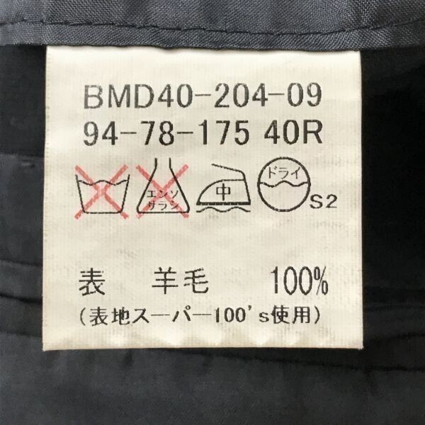 BURBERRY/BLACK LABEL 三陽商会製 総裏地 ウール/テーラードジャケット サイズ40R メンズM~L 黒  管NO. W7-005