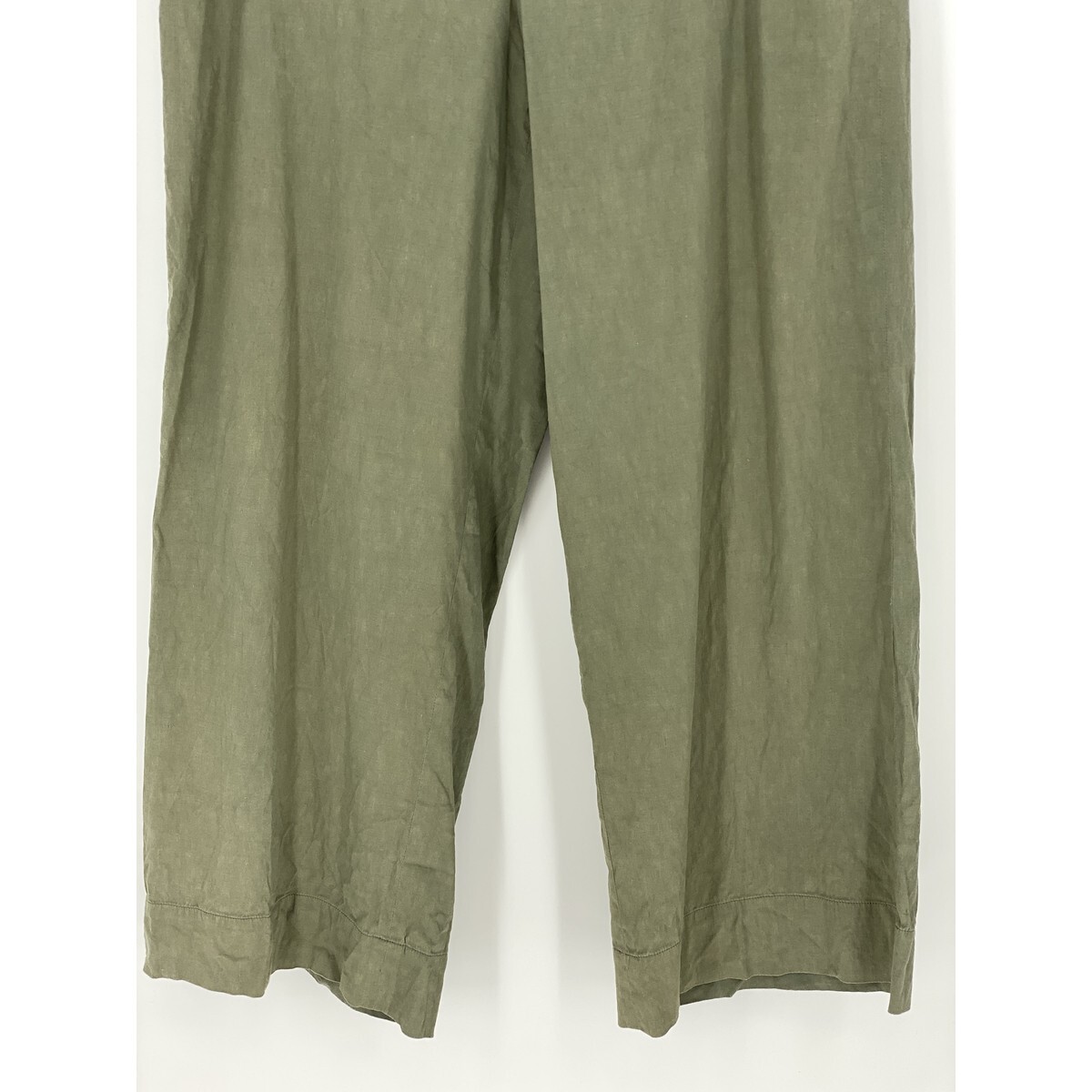 B0712/極美品 23区 ニジュウサンク リネン ストレッチ ストレート ワーク ガウチョ ワイドパンツ 46 XL カーキ 緑 レディース 大きいサイズ