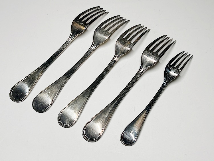 クリストフル カトラリー フォーク 大小5本 ◆商品詳細 寸法(約):最大:20.4x2.6(高×幅cm) 最小:7x2.2(高×幅cm) ※寸法に若干の誤差が生じる場合もございます。 汚れ、変色、擦り傷が多数あり、1本に錆がありますので、 ご承知の上入札お願いします。 状態等画像にてご確認の上ご入札よろしくお願いいたします。 ◆発送先等のご連絡とお支払いについて ※発送先等のご連絡 落札時から48時間以内にお願い致します。 ※お支払 かんたん決済の期限内にお願い致します。 複数点落札時にまとめて取引の場合(72時間内)に、 まとめて取引の取引手順(落札者方の操作)を参考にお願い致します。 梱包したサイズを測って、地方によって送料を決めますので、よろしくお願いします。 ◆掲載画像について ※画像は現物を撮影しておりますが、照度、遮光、モニターによっては実物と 色目が異なって見えることがありますのでご注意ください。掲載画像では確認 できない傷や汚れがある可能性もございます、あくまで 中古品であるということをご承知の上、御入札をお願い致します。 ◆補償について 商品到着後はすぐに状態の確認をお願い致します。 商品の破損等がございまし たら、箱や梱包材など全てそのままの状態で保存し、お早めにご連絡ください。 (到着日から一週間以上経過、梱包材の廃棄済み等の場合、保証は致しかねます のでご注意ください。) ◆返品について 思っていたイメージと違う、などのお客様主観による返品はお受けできません ので、予めご了承ください。ノークレーム、ノーリターンでお願いします。届 いた商品が商品説明と著しく異なる場合(寸法、キズ記載ミスなど)のみ承り ます。早めにご連絡ください。 ◆注意事項 当方の希望価格と隔たりがある場合は、終了前にやむなく取下げさせて頂く場 合がございます。 ※商品ご落札翌日から4日間以内にご連絡が取れない場合は、入札取消の処置を 取らさせていただく場合がございます。 ※評価の悪い方は取り消す場合がございます。 ※原則として当方の不備以外のキャンセル・返品・返金は受け付けておりません。 以上の点を予めご了承頂いた上で、入札・落札お願い致します。 ◆発送方法 ▼ゆうパック(補償あり/追跡あり) 梱包後のサイズ:~約60cm ※送料全国一律880円 (但し北海道、沖縄、離島は+500円いただきます。) 発送元は静岡県となります。 ( 商品の組み合わせによっては同梱をお断りさせていただく場合があります。) ※大型商品について 郵便局の規定を超える商品の場合は、佐川急便またはヤマトでの発送となります。 |