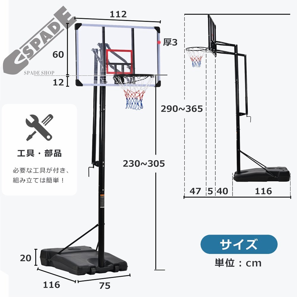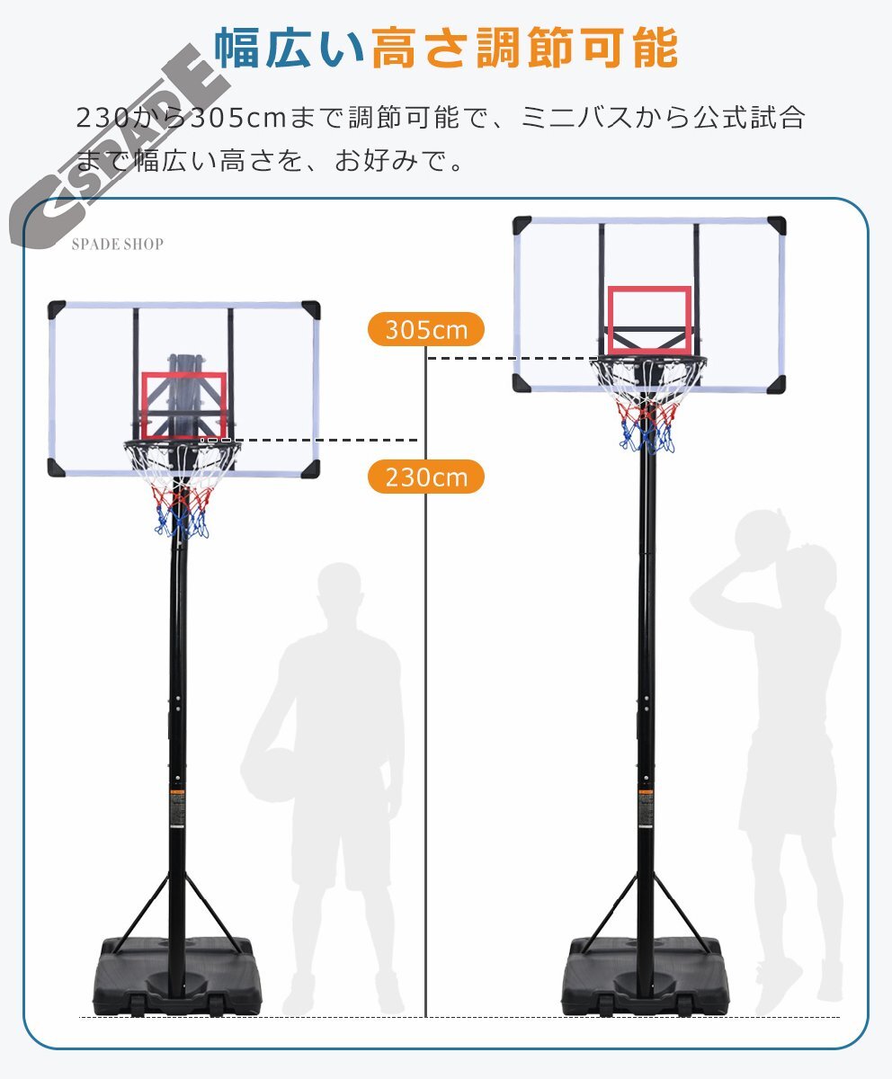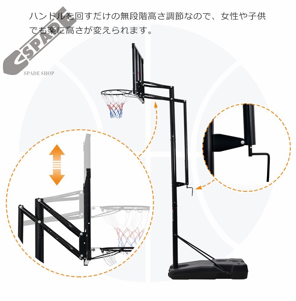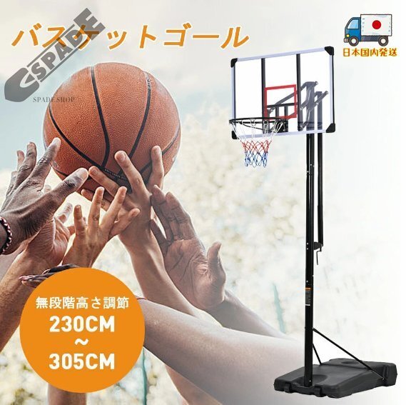 【国内発送】バスケットゴール ハンドルを回すだけの簡単高さ調節 公式&ミニバス対応 230-305cm 移動可 工具付き ゴールネット バックボー