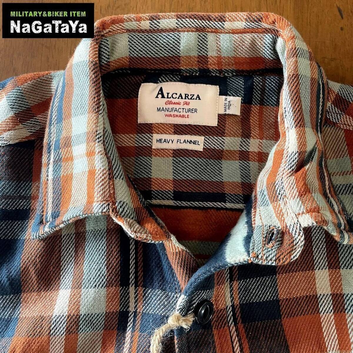 ALCARZA アルカーザ ヘビーネルチェック ワークシャツ タータンチェック柄 ビンテージオレンジ 7 Lサイズ アメカジ バイカー ストリート