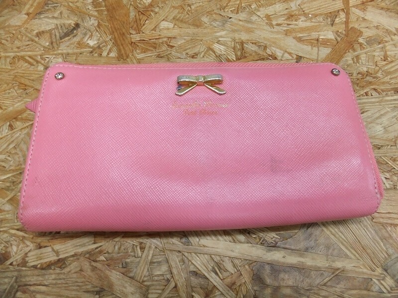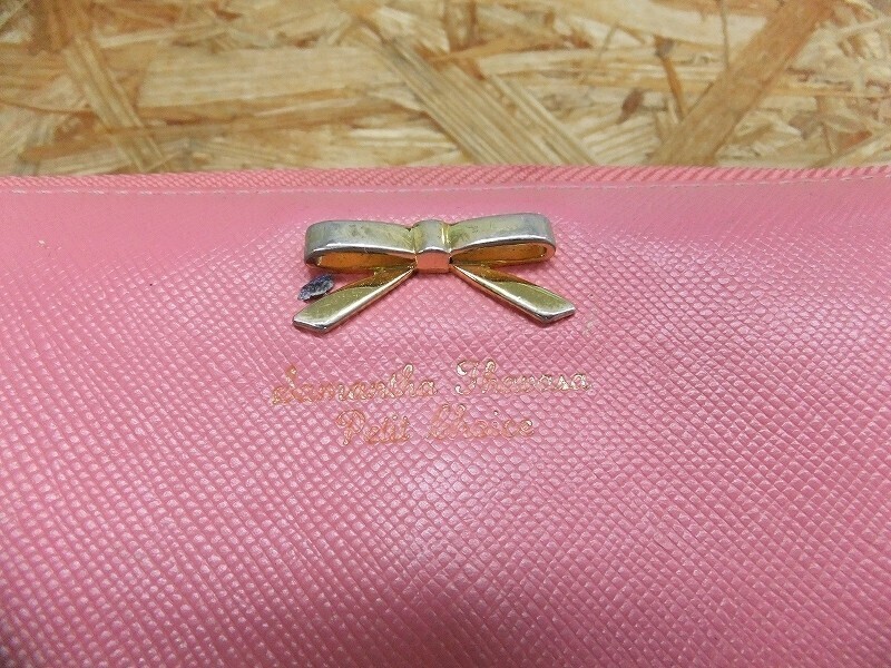 Samantha Thavasa サマンサタバサ リボンアクセント 型押し シボ革 スコッチグレインレザー 長財布 ピンク レディース