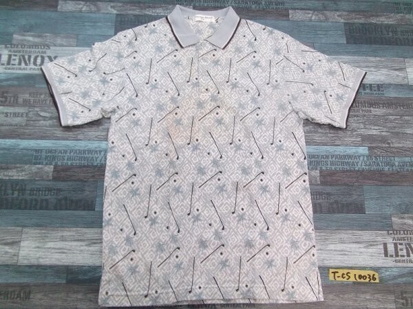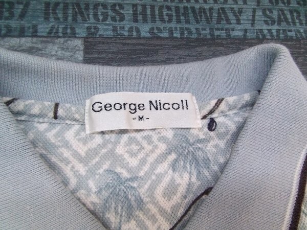 GEORGE NICOLL ジョージニコル メンズ 総柄 ゴルフ 半袖ポロシャツ M ブルーグレー白 です。