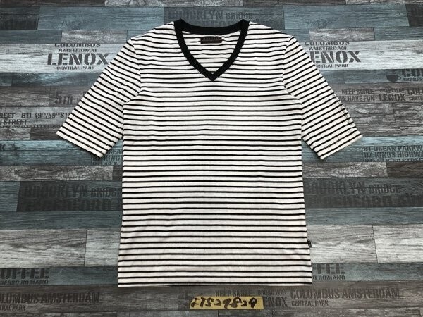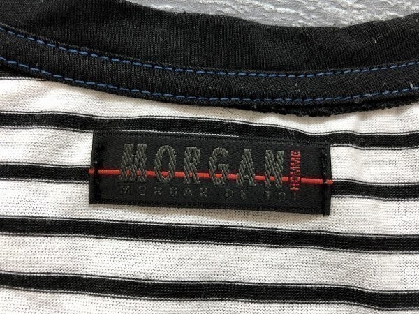 MORGAN HOMME モルガン メンズ Vネック ボーダー 半袖Tシャツ 白黒 です。