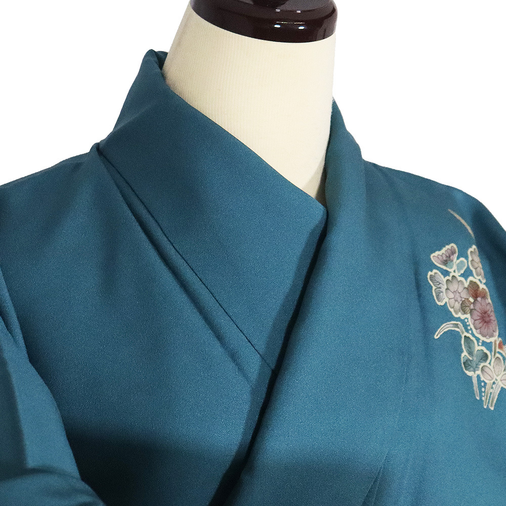 | 商品説明 | 地色は和色大辞典より藍色・蒸栗色・勿忘草色・ 黒緑色に近いと思います。 裄丈短めです。 この訪問着は地色・柄はもちろんのこと 装飾などの細かい所にまでこだわっています。 模様も上品で、 照明や太陽の光にあたると、とても豪華にみえます。 とても上品な訪問着です。 生地の状態は良いと思います。 目立ったシミ汚れはないと思います。 美品です。 このままお召ください。 |