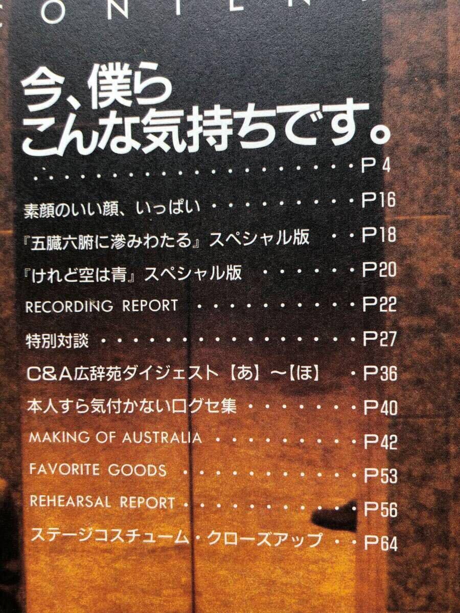 内容は目次の写真をご覧ください。充実していて、読みごたえがありそうです。CHAGEとX JAPANのToshiとの対談もあります。