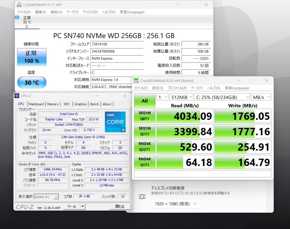 | CPU: 超高速 Intel 10コア 卓越性能 第13世代Core i5-1345U 1.6Ghz、 10コア12スレッド (ターボ・ブースト利用時の最大周波数 4.7GHz) |