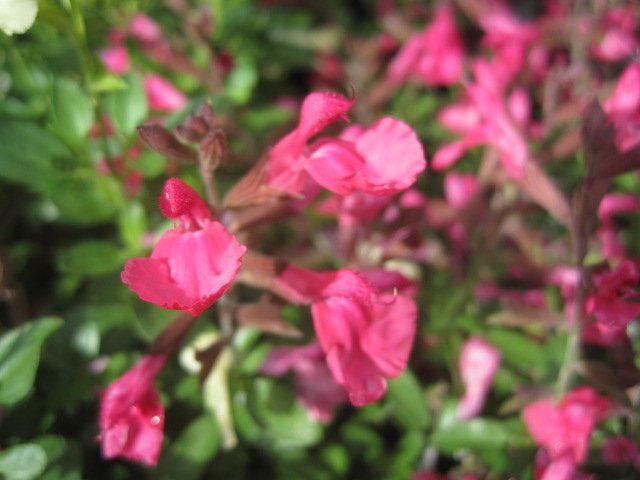 グレッギーと共にチェリーセージと呼ばれるミクロフィラの品種 気温や季節により花色が様々に変化する