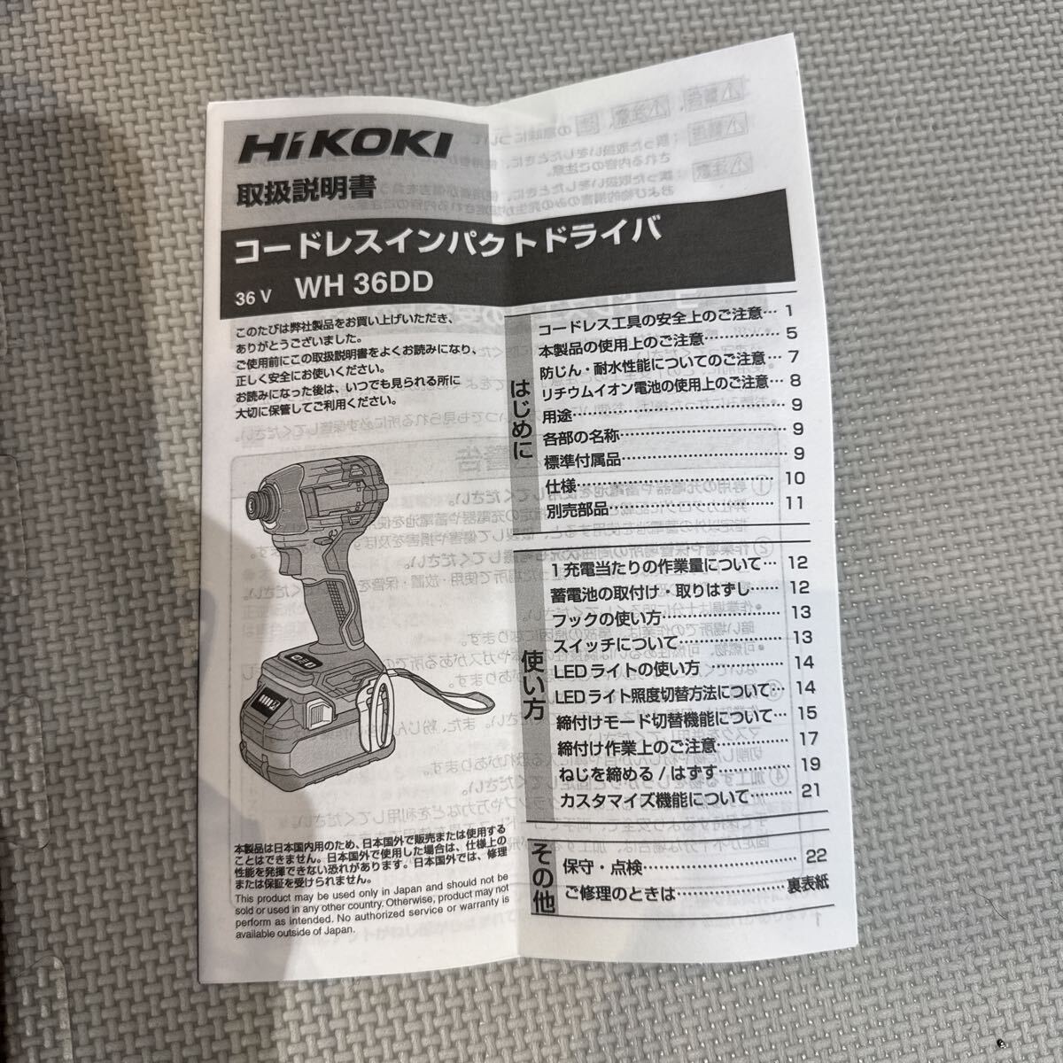 【新品未使用、送料無料】 コードレスインパクトドライバ ハイコーキ WH36DD バッテリー1個のみ  ストロングブラック  36V