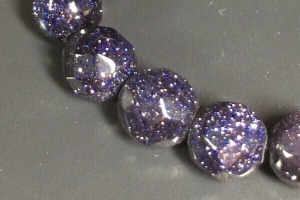ブルーゴールドストーン(紫金石)別名ブルーサンドストーン。この石には、まるで夜空に煌く星空のような輝きが見られます。ブルーゴールドストーン(紫金石)には、出会い、チャンスを引き寄せるという意味があります。前向きな人生を目指したい人には、きっと良いパワーを与えてくれるでしょう。新しい環境が始まる人にピッタリです。明るい光のエネルギーに満ち「マイナス」を「プラス」へ変化させてくれます。「不安」「恐怖」「悲しみ」「怒り」などのネガティブな雑念を、綺麗にリセットしてくれます。またブルーゴールドストーン(紫金石)は、財運アップの効果があるパワーストーンで、持ち主のビジネスを成功に導く力が宿っています。資産の拡大を目指す時にもオススメです。