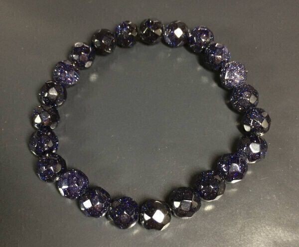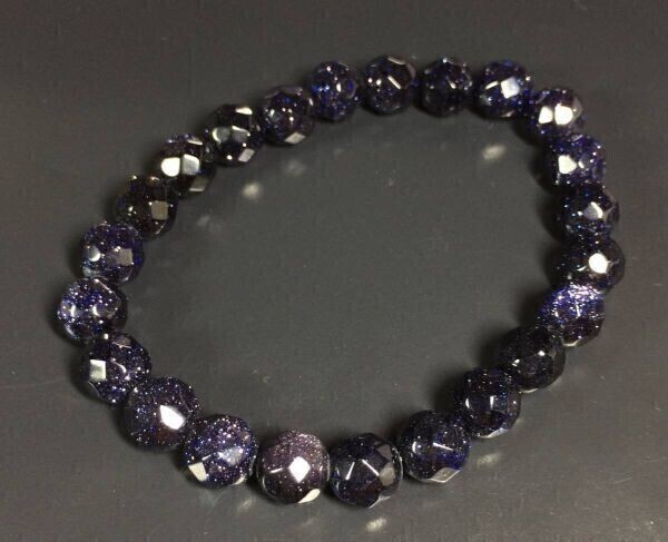 【Premio Fortuna】ブルーゴールドストーン(紫金石)のブレスレット 青砂石 16面カットの8ミリ珠 内径約16センチパワーストーン 30158