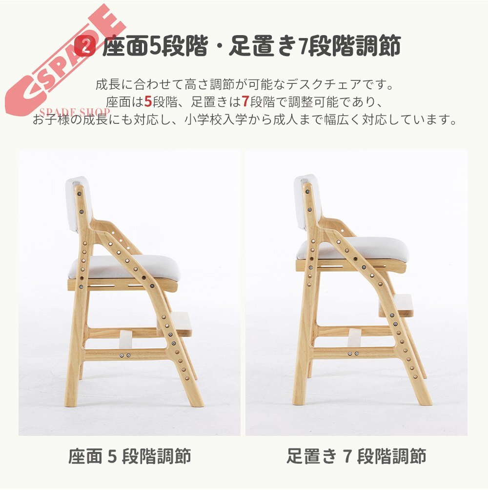 • 【座面5段階足置き7段階調節】成長に合わせて高さ調節が可能なデスクチェアです。座面は5段階、足置きは7段階で調整可能であり、お子様の成長にも対応し、小学校入学から成人まで幅広く対応しています。