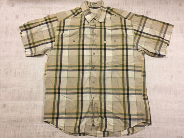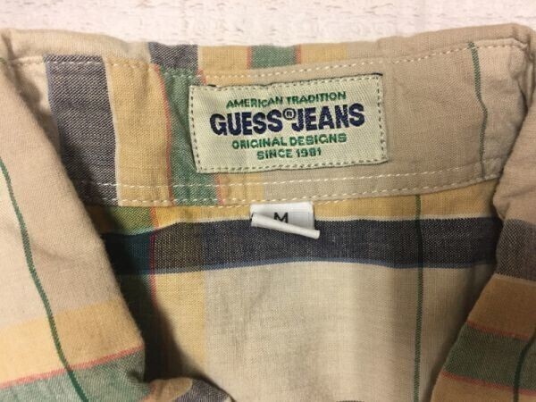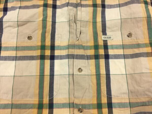香港製 HONG KONG古着 ゲス GUESS アメカジ ストリート ビッグシルエット 90s マドラスチェック半袖シャツ メンズ M ベージュ です。