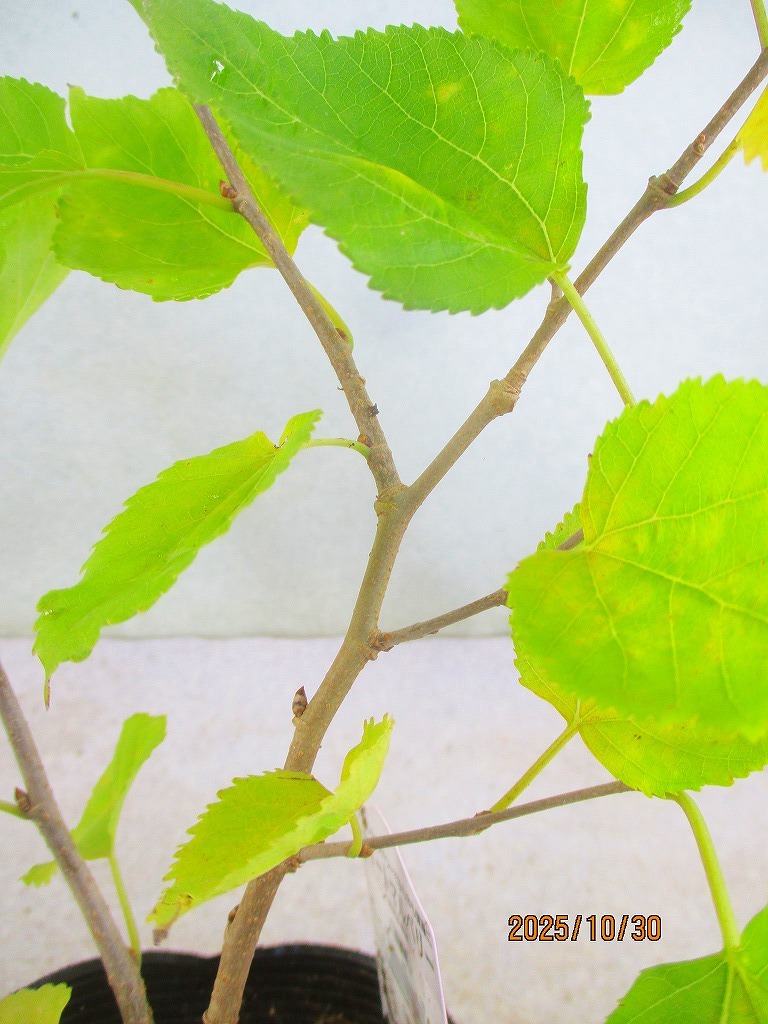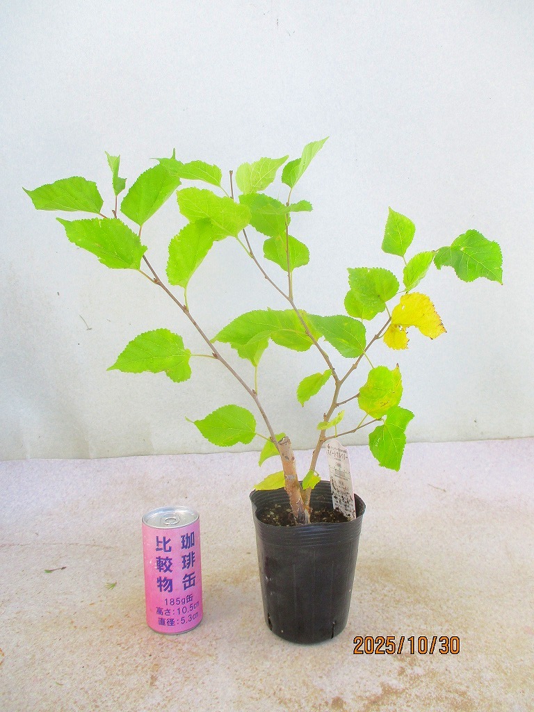 [野風苗木流通] スイートマルベリー (102897)全高:47㎝※同梱包は「まとめて取引」手続厳守※100サイズ*送料明記 同梱包ご希望は「まとめて取引」でお手続きして下さい。 *同梱包は[野風盆栽流通]&[野風苗木流通]のタイトルでの出品商品に限ります。* 単品(セット品は1組)発送ご希望の際は「まとめて取引」の手続きをしないでください。入札前に必ず下記の「発送方法」に記載の送料を確認してください。 ヤフオクの取引においてメッセージは不要です。挨拶などを省略できる取引システムですし取引ナビの案内で進行状況が判るので都度の連絡は不要です。配送日時指定や連絡事項のみお知らせください。双方合理的に進めましょう。また、お急ぎの方は入札をご遠慮ください。業務時間内のでの対応になります。 寸法は鉢を含む全高です。 一緒に撮影しているスケールまたは比較物をご参照ください。 珈琲缶は高さ約10㎝、直径約5㎝です。 500mlペットボトルは高さ約21㎝です。 ■画像の様子から経時変化しますので撮影日(画像記載)からの変化はご了承下さい。 *花物・実物は特にご注意下さい。 画像(撮影時)では開花品でも、お届け時は花終わりを想定して下さい。 ◎落札が無い場合は、自動再出品が継続されます。 撮影から2か月経過以降は開始価格が下がりますが、商品の劣化も進みますので、 撮影日からの期間経過品はある程度の劣化を想定で入札にご参加下さい。 商品により90日間程度、同じ画像を使用しますので、必ず撮影日をご確認下さい。 ■当方、ここでの出品以外にも大量に在庫しています。 そのため、枯れなどのダメージが梱包時までに気づかない場合もあります。 その際、双方無条件でのキャンセルをご了解下さい。 |