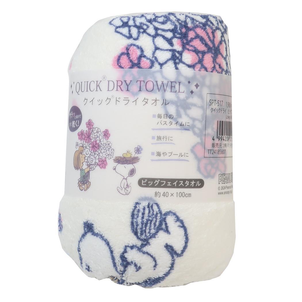 スヌーピー 速乾フェイスタオル クイックドライビッグフェイスタオル ロングタオル Loves NATURE ピーナッツ マリモクラ