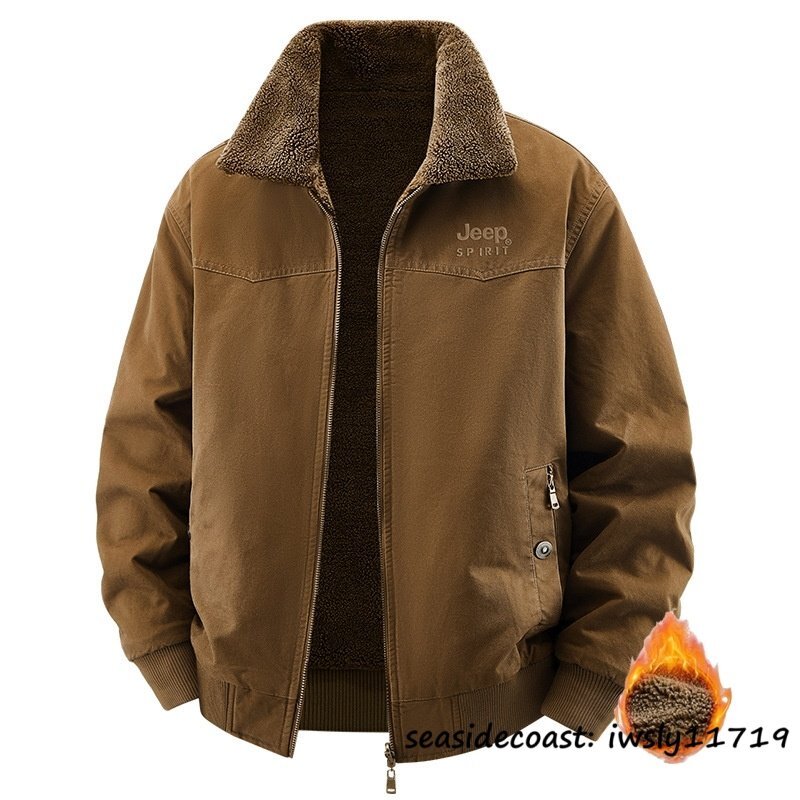 新作*ジャケット 秋冬 ブルゾン 裏フリース 防寒 厚手 防風 暖かい ムートンコート両面着 リバーシブル 作業着 ジャンパー ブラウン L