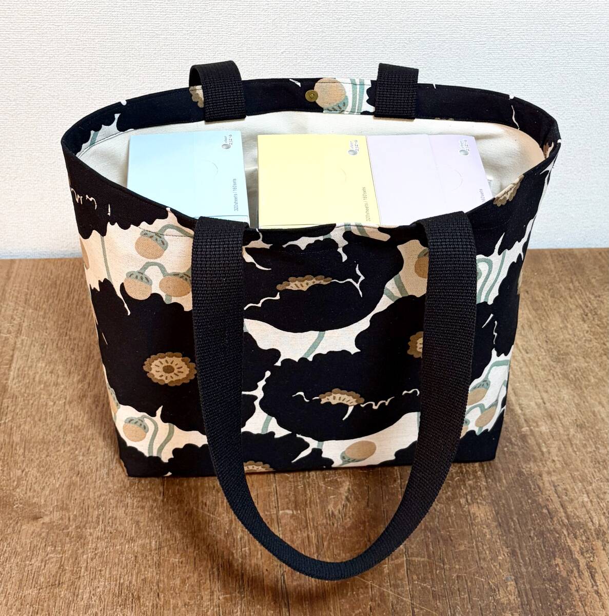 年中使える素敵なバッグができました マチが広いので たくさん収納できます 内布は生成り10号帆布を使いしっかりしたバッグにしました 内側に大きい2室のポケットをつけました 持ち手は幅3cmの厚手のかばんテープを使っていますのでしっかりしています 持ち手は53cmくらいで肩掛けできます 開閉はマグネットボタンです サイズは平置き最大で41cm、高さ27cm、底30cm×12cmです A4サイズが横に入ります ちょっとしたお出かけに 芯を貼っていないので小さくたためます サブバッグにいかがでしょうか 発送方法クリックポスト 185円 間違いのないようにまとめての発送は まとめ取引されてるお品物に限らせていただきます 単品でのお取り引きは単品での発送にさせていただきますのでご了承ください 土・日・祝日の発送はできないこともありますのでご了承ください コメントひとつひとつ心をこめて作りましたが、素人のハンドメイドです 折りたたんでの発送になりますので折り目ができます ご了承ください ご理解の上、ノークレーム・ノーリターンでお願いします ほかにも出品してますのでよろしければご覧ください 自己紹介も必ずお読みください |