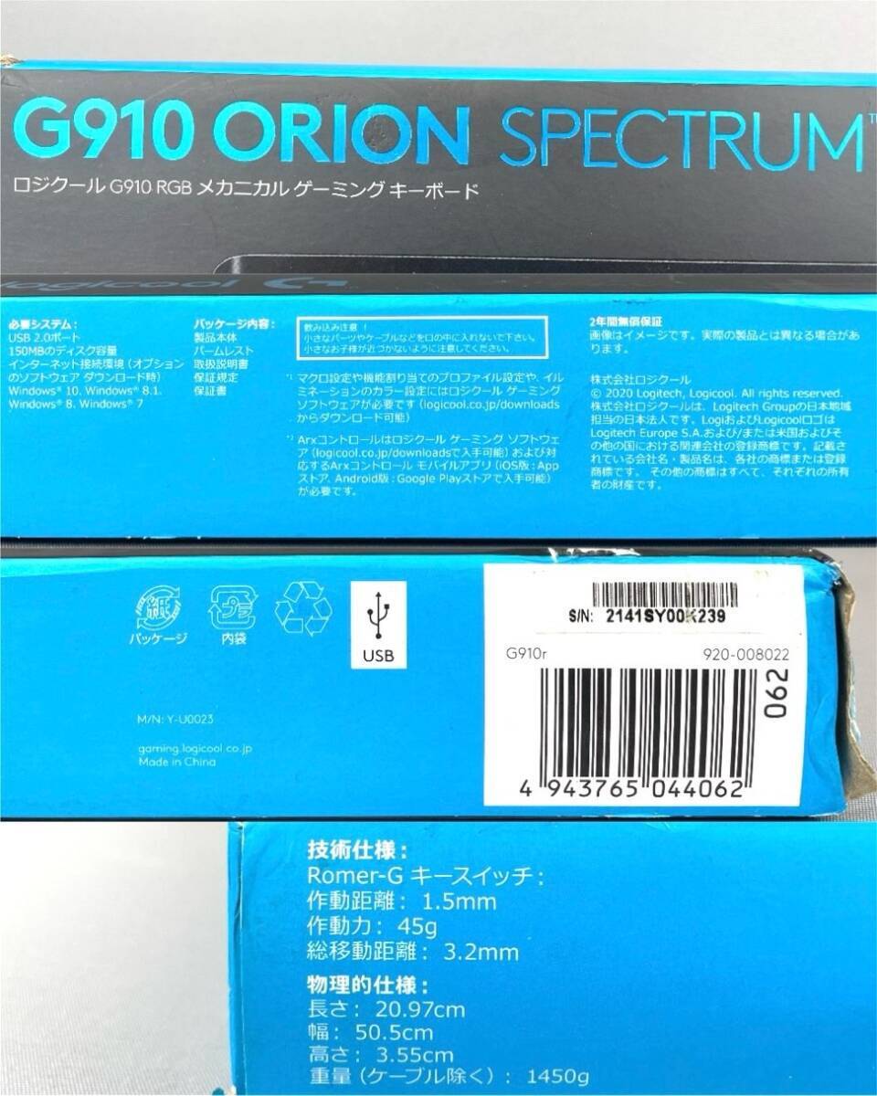 【婀】①未使用 logicool ロジクール G910 RGB メカニカル ゲーミング キーボード ORION SPECTRUM J29AG10