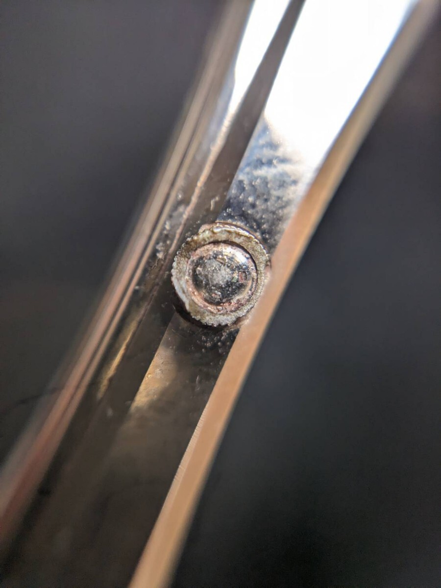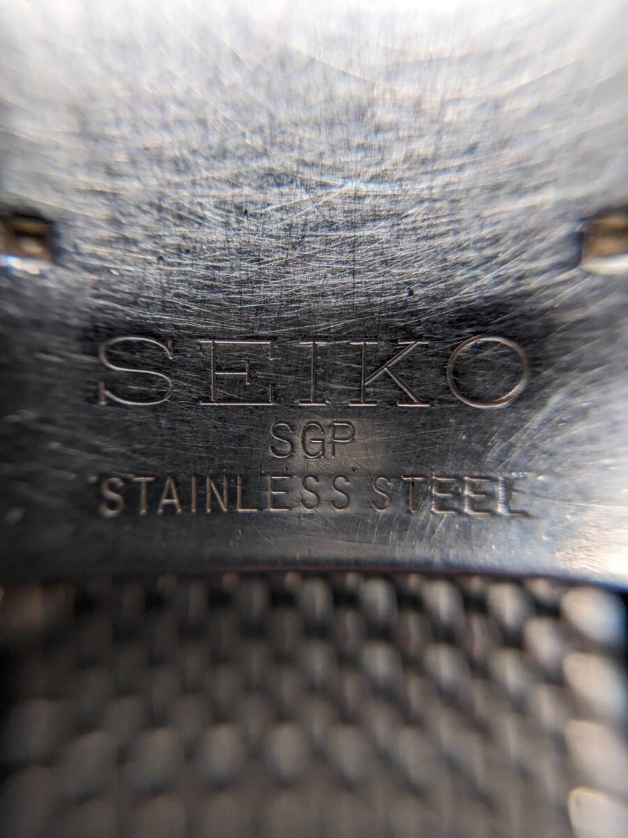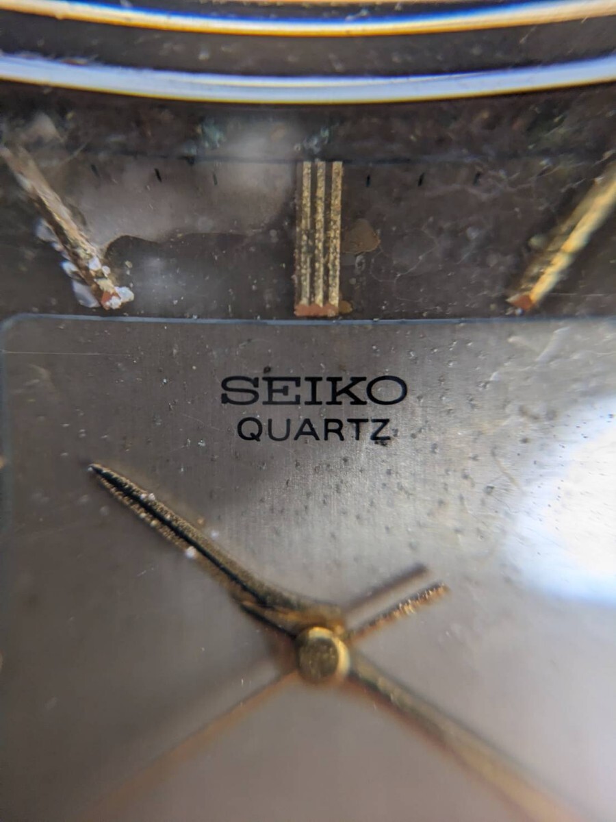 こちらは電池切れの為か現在は動いておらず、リューズも固着して動かなくなっています。
