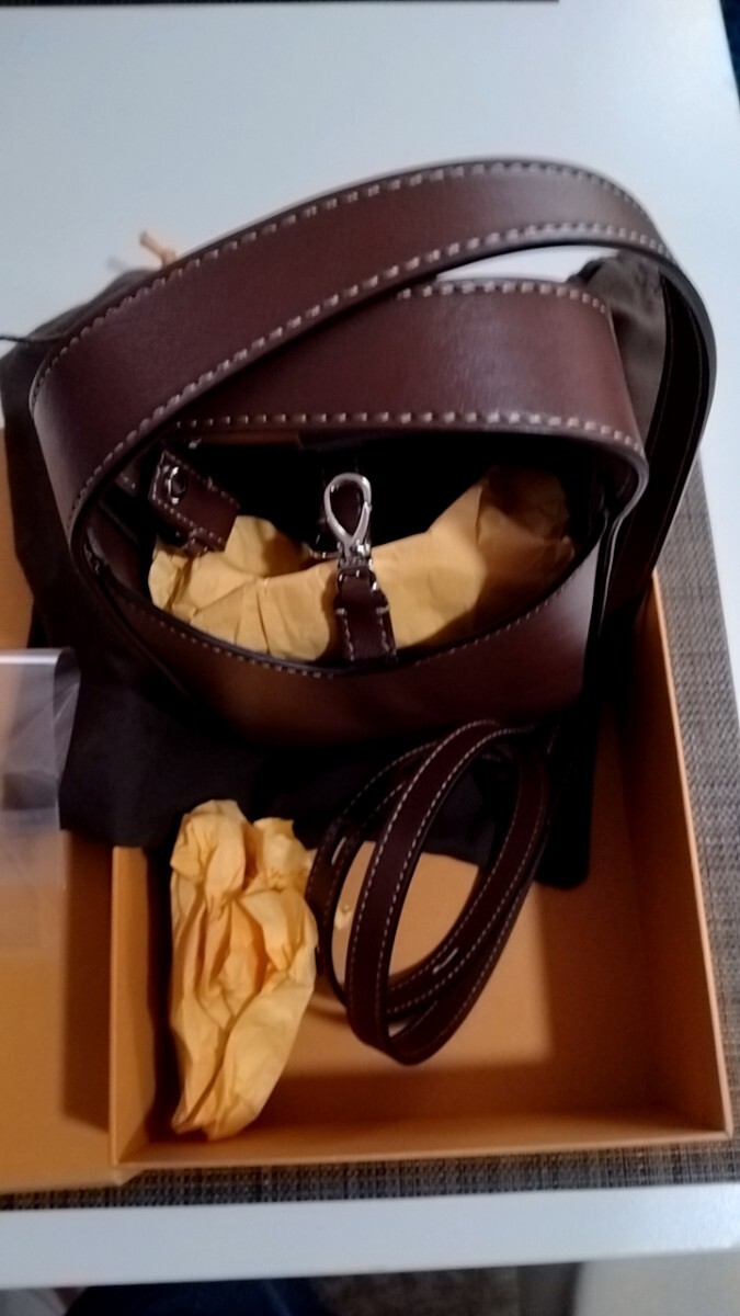 興味を持って下さりありがとうございます。普段用の斜めがけの出来るブラウン系が手持ちになくご褒美と思い探しに探し、バイマ星5のシヨップにて2個持ちの前提で購入しましたが、納得のいくサブバッグが見つからずに保管です。高級感もあり、色味も良く悩みましたが活躍して下さる方に現行品ですが出品させて頂きました。