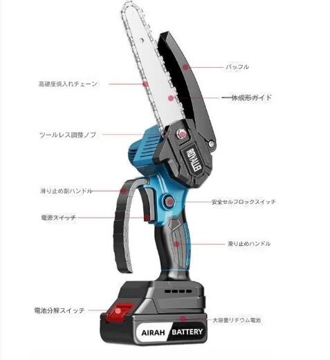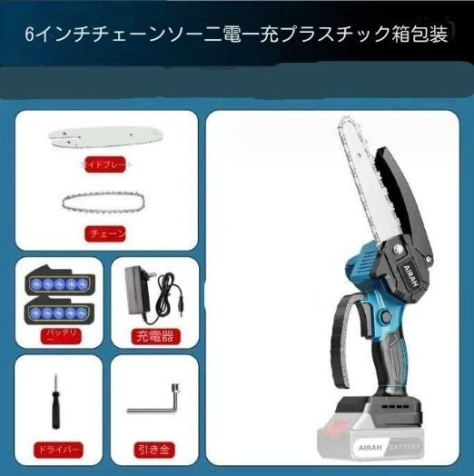 リチウム電気チェーンソー充電家庭用小型伐採木剪定電動のこぎり6寸二電一充