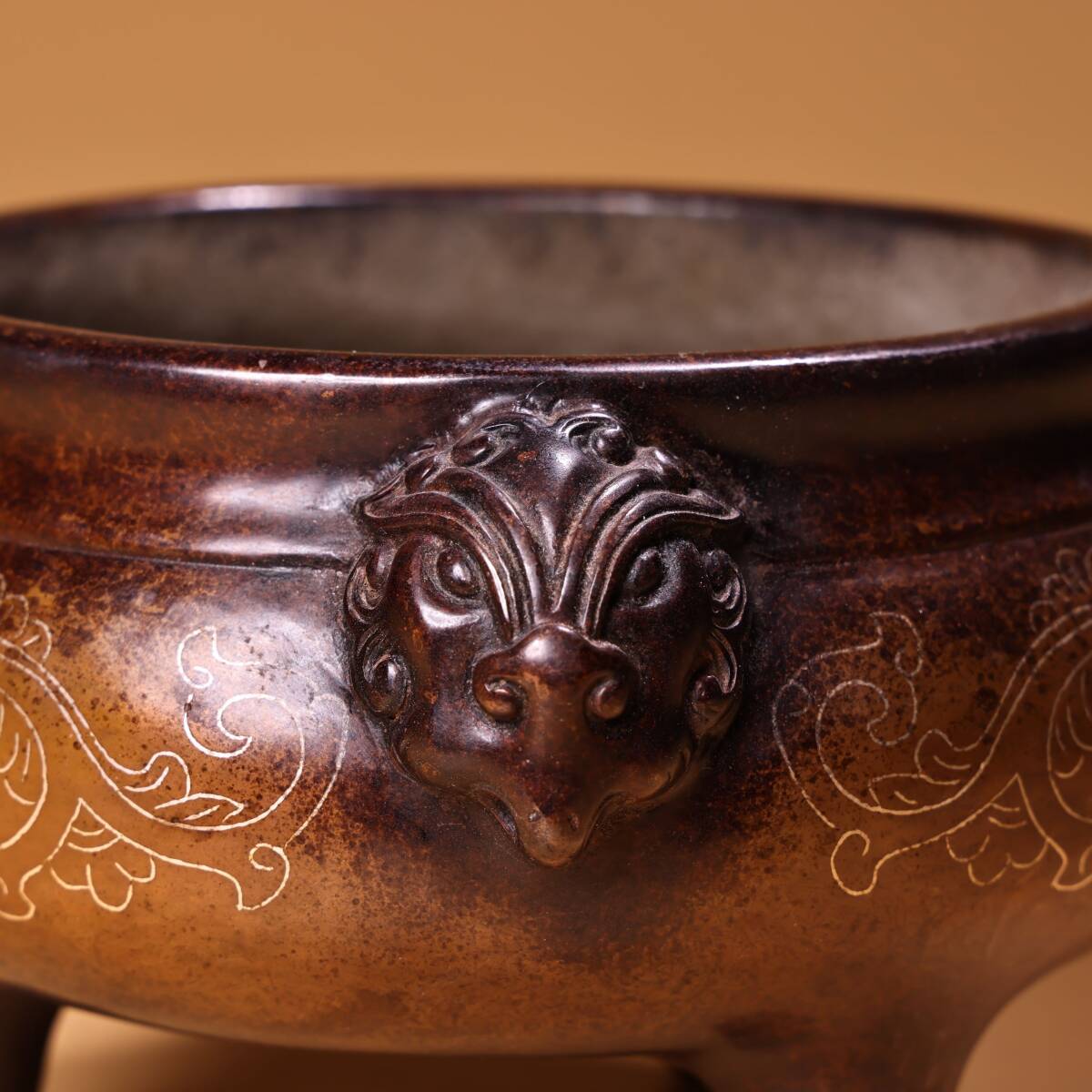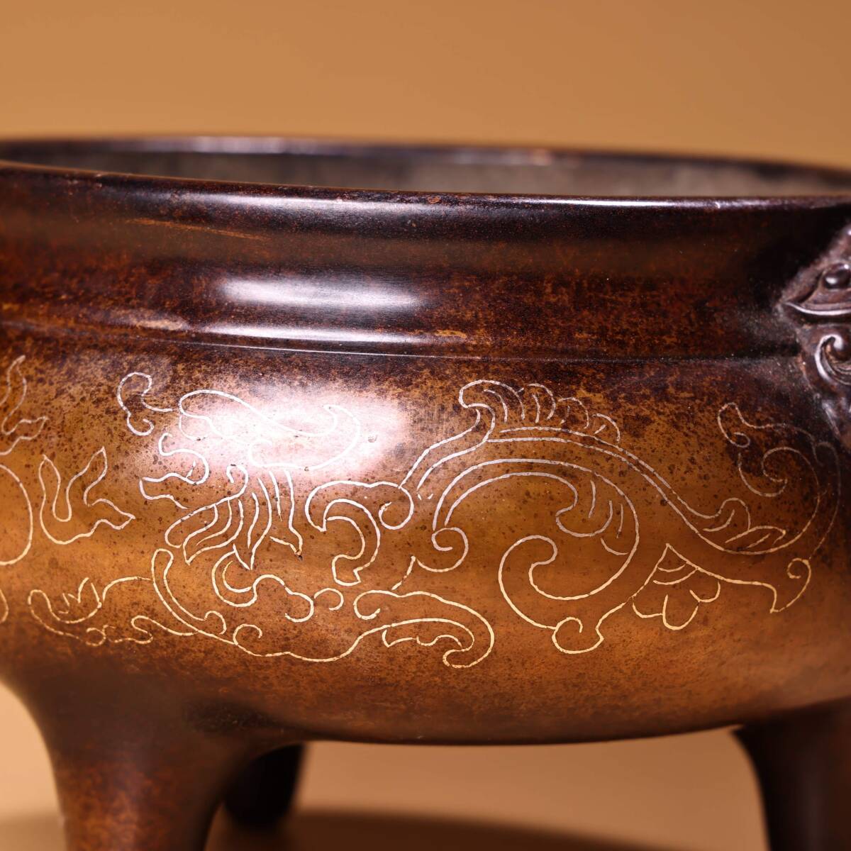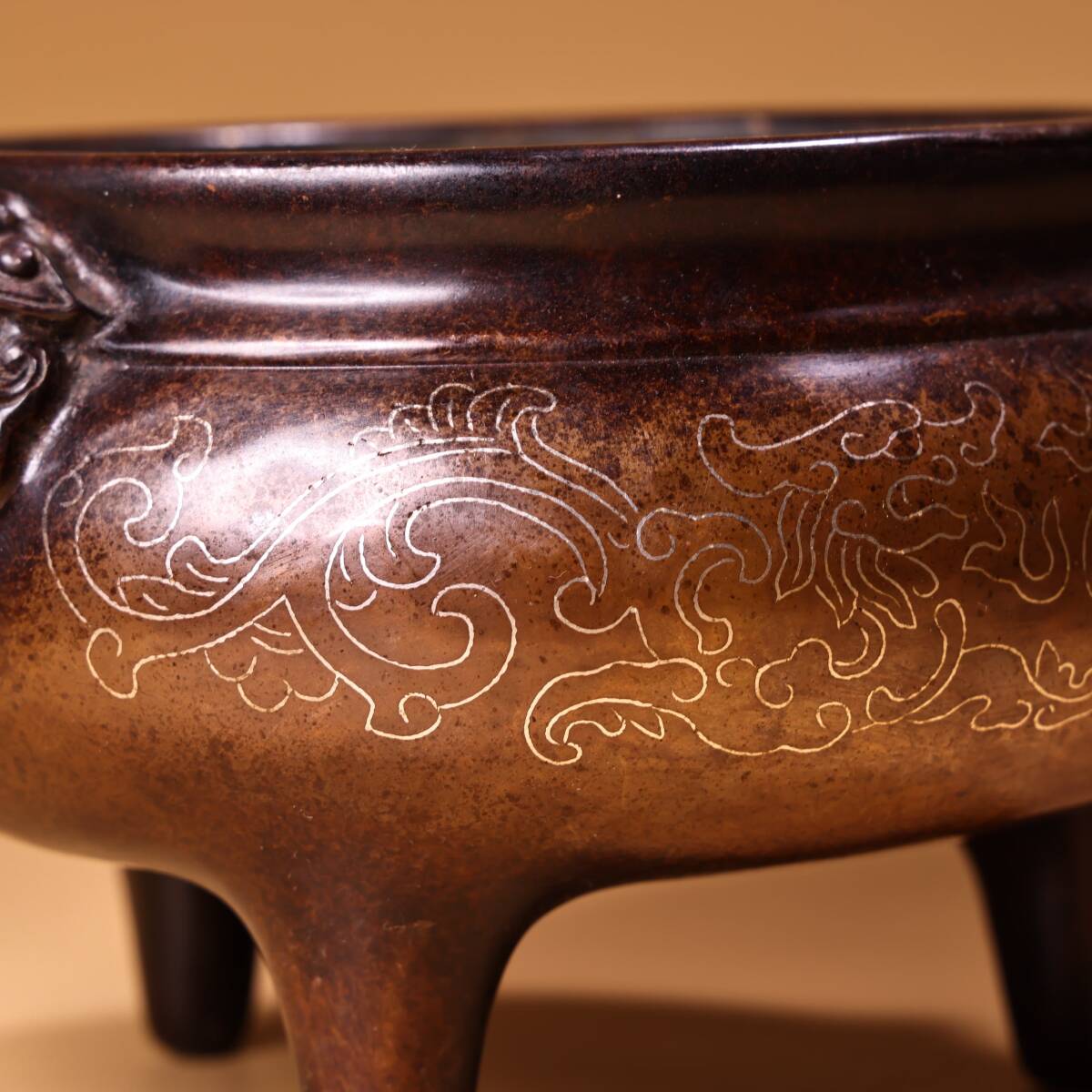 【超珍館蔵】紫銅製 銀絲嵌 香炉 仏具 宗教 古賞物 古董品 古美術品 時代物 旧家蔵出 稀少珍蔵品