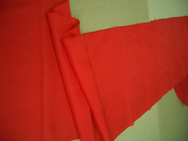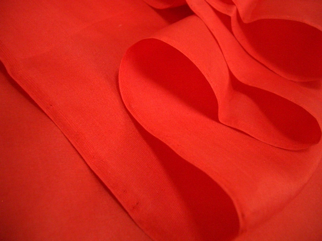 古布正絹洗い張り裏地はぎれ赤色 490㎝ アンティーク昔着物リメイク古裂胴裏