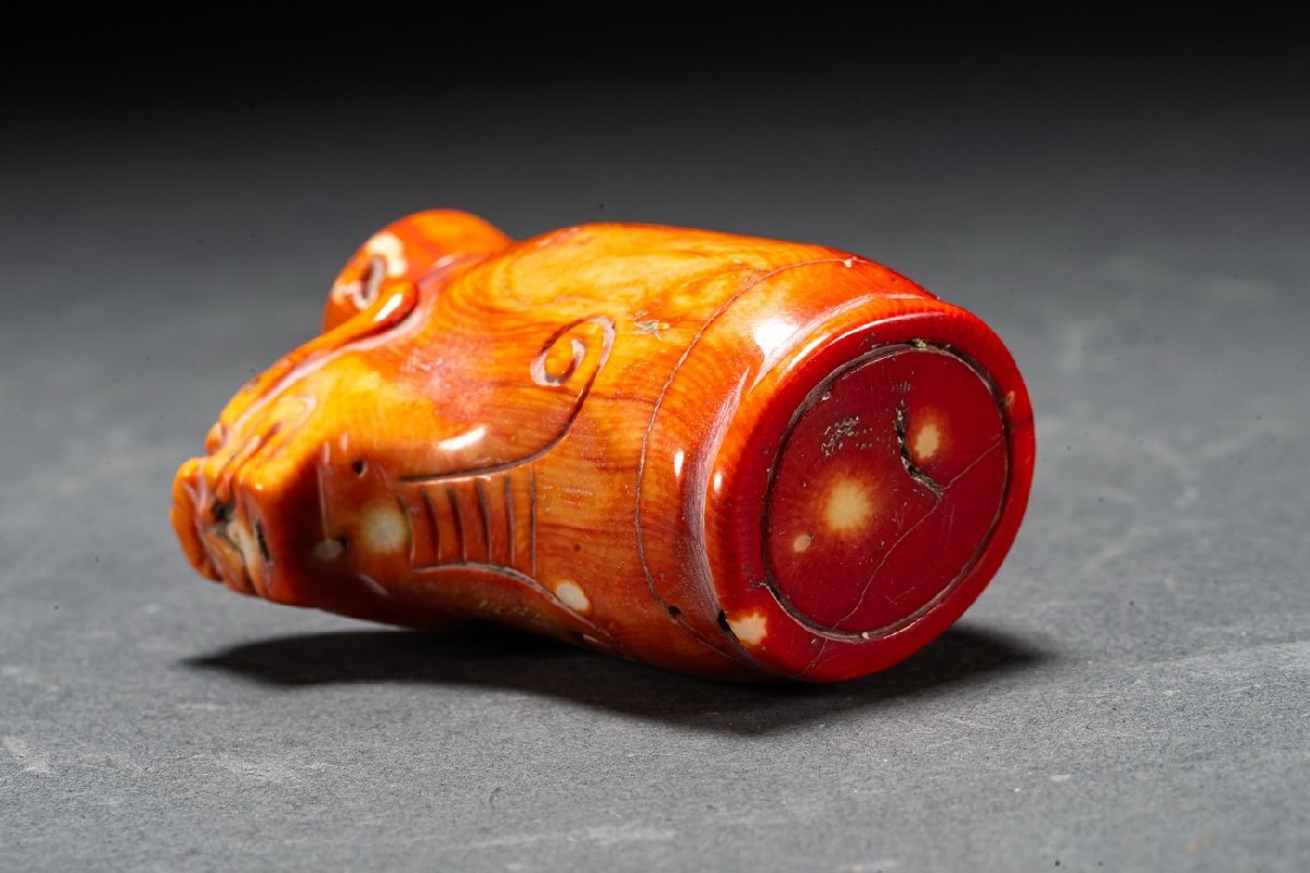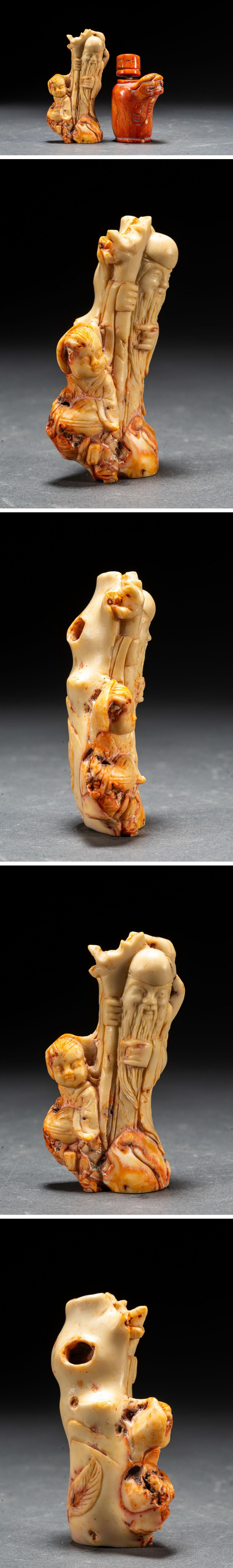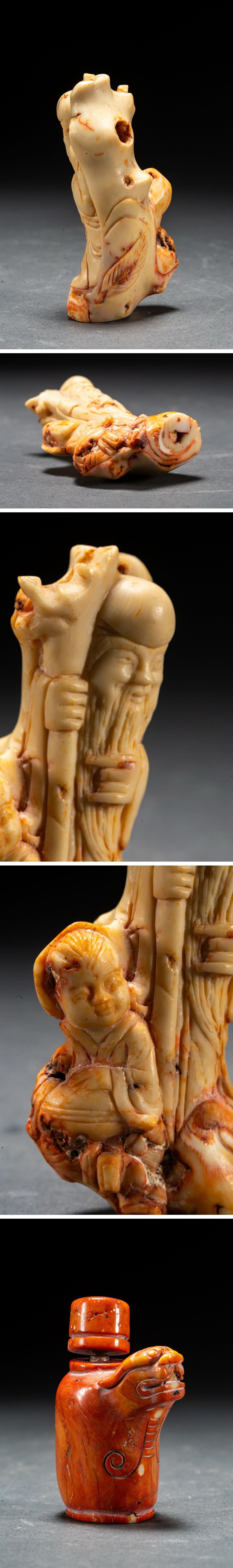 【雲錦】某有名オークション購入 時代物 赤珎材根付・鼻煙壺 古置物 古美術 時代コレクション7L9-45S05