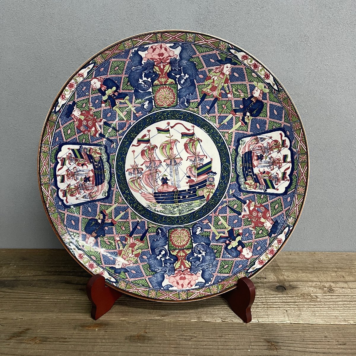 中古 オランダ舟画 レトロ皿 富永陶園 陶器 絵皿 雑貨食器 飾り皿 大皿