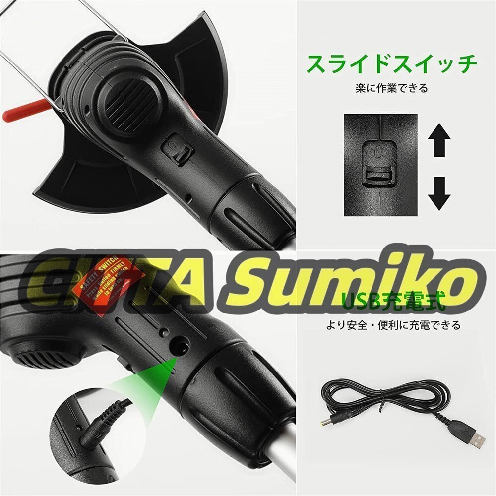 商品説明 商品説明 【製品仕様】 色:黒材質:ABS +アルミチューブ+銅モーター電源タイプ:USB充電、内蔵2000mAhリチウム電池アプリケーション:さまざまな芝生のトリミングに適しています充電時間:2.5~3時間使用時間:航続45分回転速度:1分で13000になります【この商品に