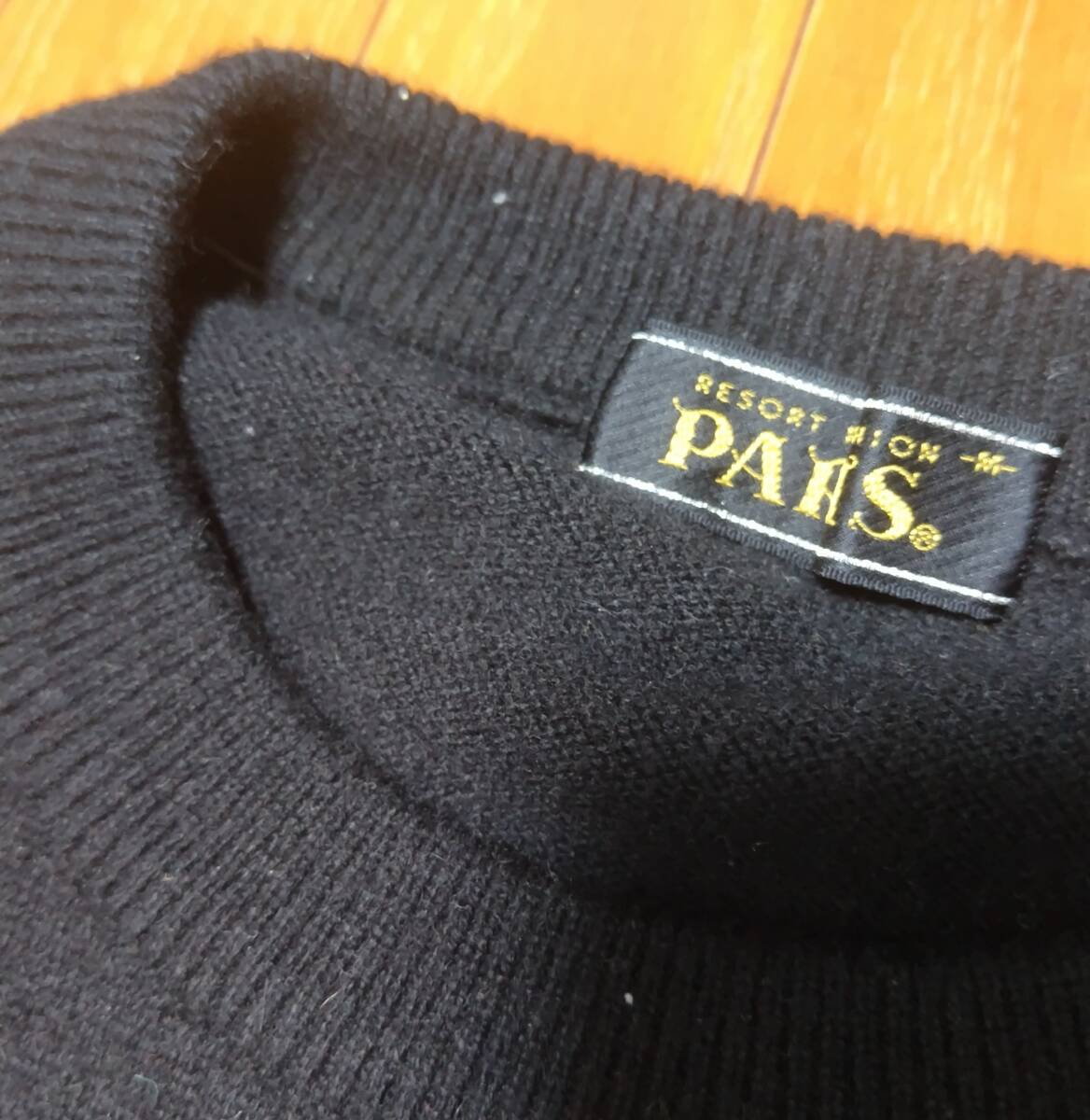 厚手 Paris パリス カシミヤ100%ニット カシミア セーター 丸首 クルーネック M 黒 ブラック ふわふわ メンズ 日本製
