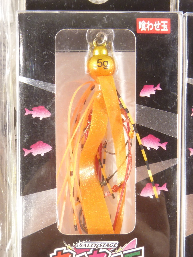 小さい喰わせ玉が、水流でアクションし、音や派手な色合いで喰い気を誘う新しいタイプのタイラバです。