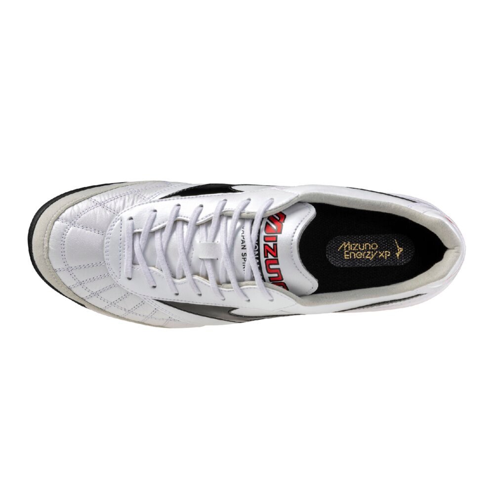 | 詳細 | 【商品名】 モレリア SALA JAPAN TF(フットサル) 【カラー】 09:スーパーホワイトパール×ブラック 【特徴】 天然皮革がもたらす柔らかなフィット感と軽量性が魅力の1足。フルレングス仕様のミッドソール全面にMIZUNO ENERZYを採用し、クッション性と反発性を追求。ミズノ史上最高のインソール用高反発ソール素材を使用した、MIZUNO ENERZY xp INSOLEを搭載。グリップ性と耐摩耗性を追求したソール意匠も魅力。 ■フットサルシューズ/トレーニングシューズ ターフコート用(人工芝) 甲材:人工皮革、天然皮革 底材:合成底 約245g(27.0cm片方) 2E相当の方向け |