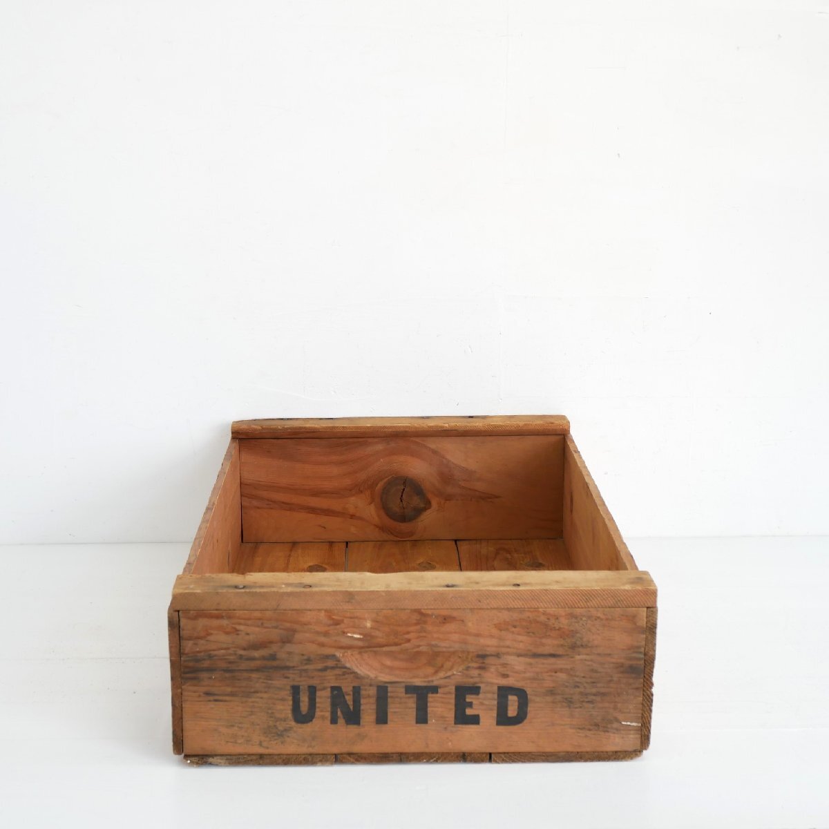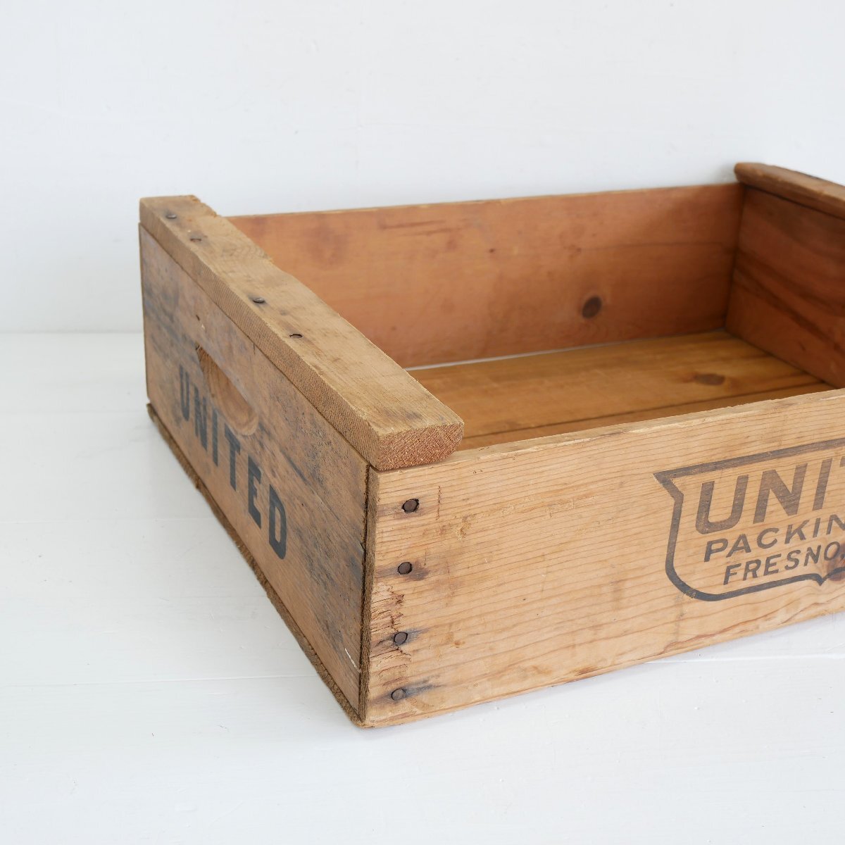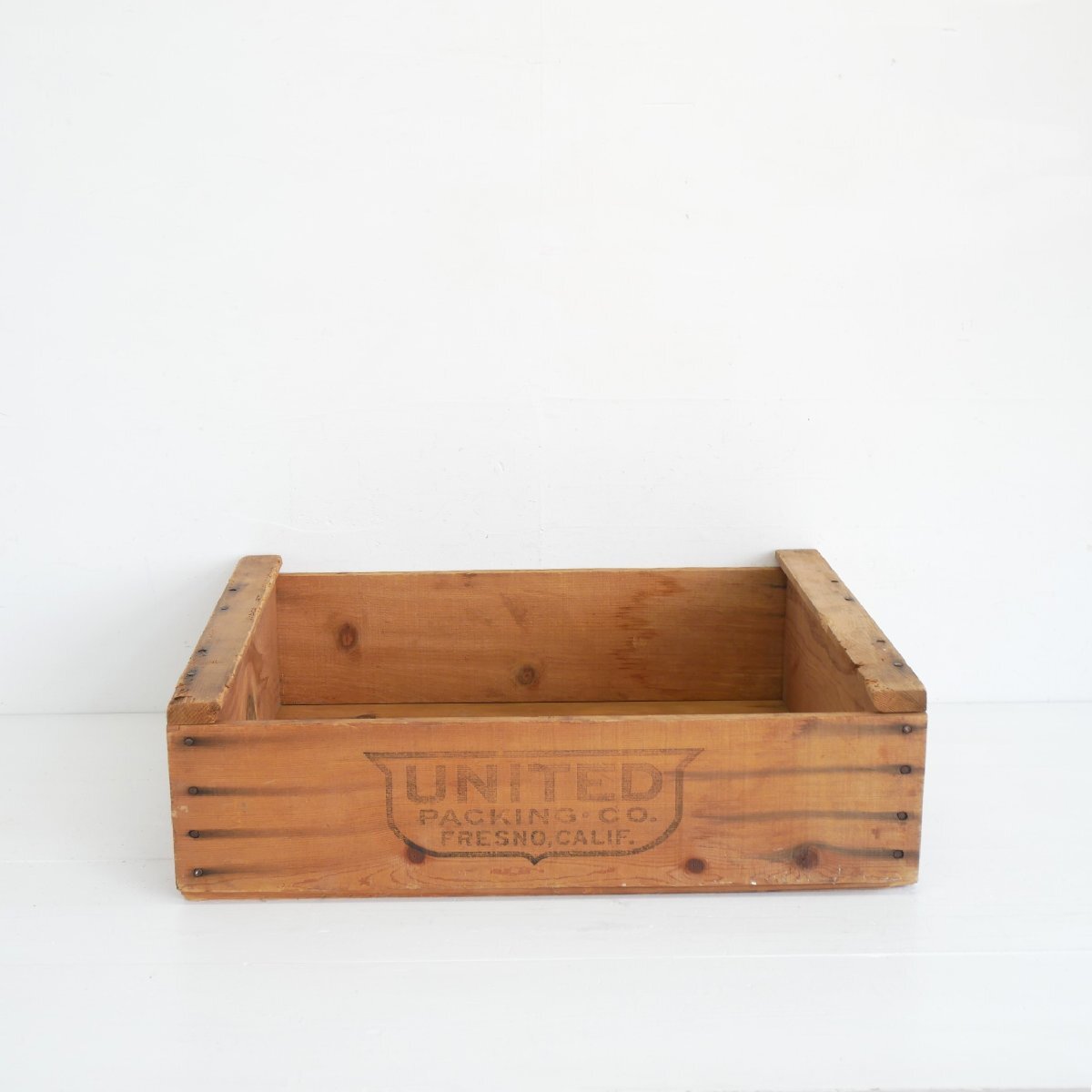 | 商品説明 explanation | カリフォルニア州フレズノにある包装品の会社「UNITED PACKING CO.」の木箱です。 年代の詳細は不明ですが、かなり古いモノと思われます。 いい風合いの木箱を、インテリアや店舗什器などにいかがでしょうか。 |