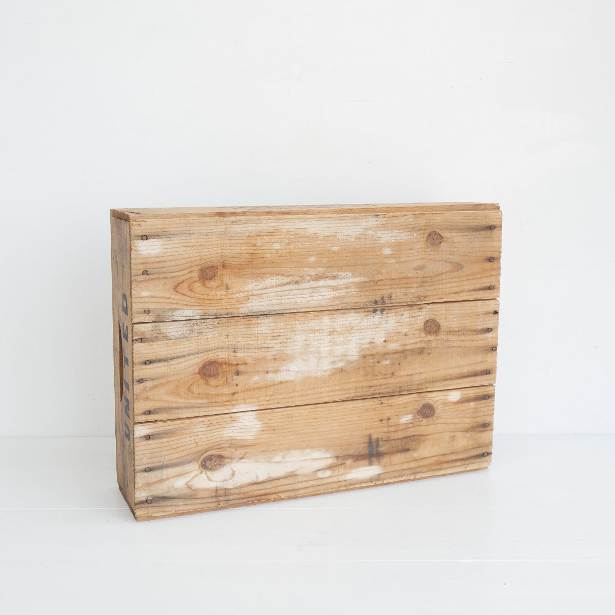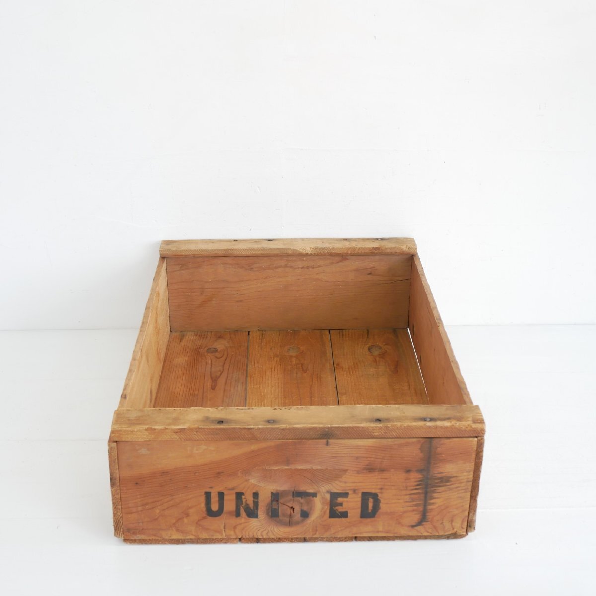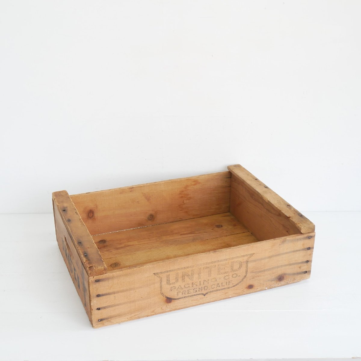 | 商品説明 explanation | カリフォルニア州フレズノにある包装品の会社「UNITED PACKING CO.」の木箱です。 年代の詳細は不明ですが、かなり古いモノと思われます。 いい風合いの木箱を、インテリアや店舗什器などにいかがでしょうか。 |