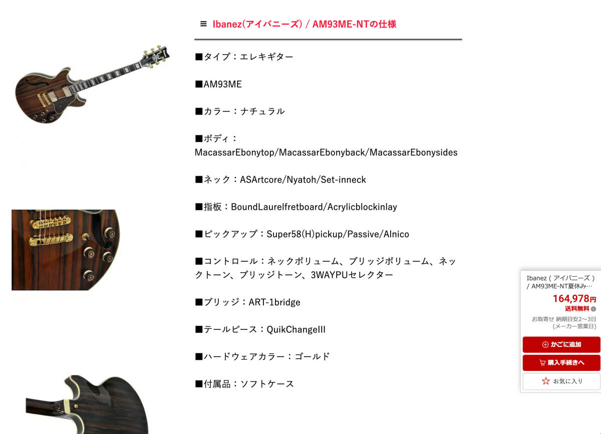 Ibanez/Artcore AM93ME-NT アイバニーズ