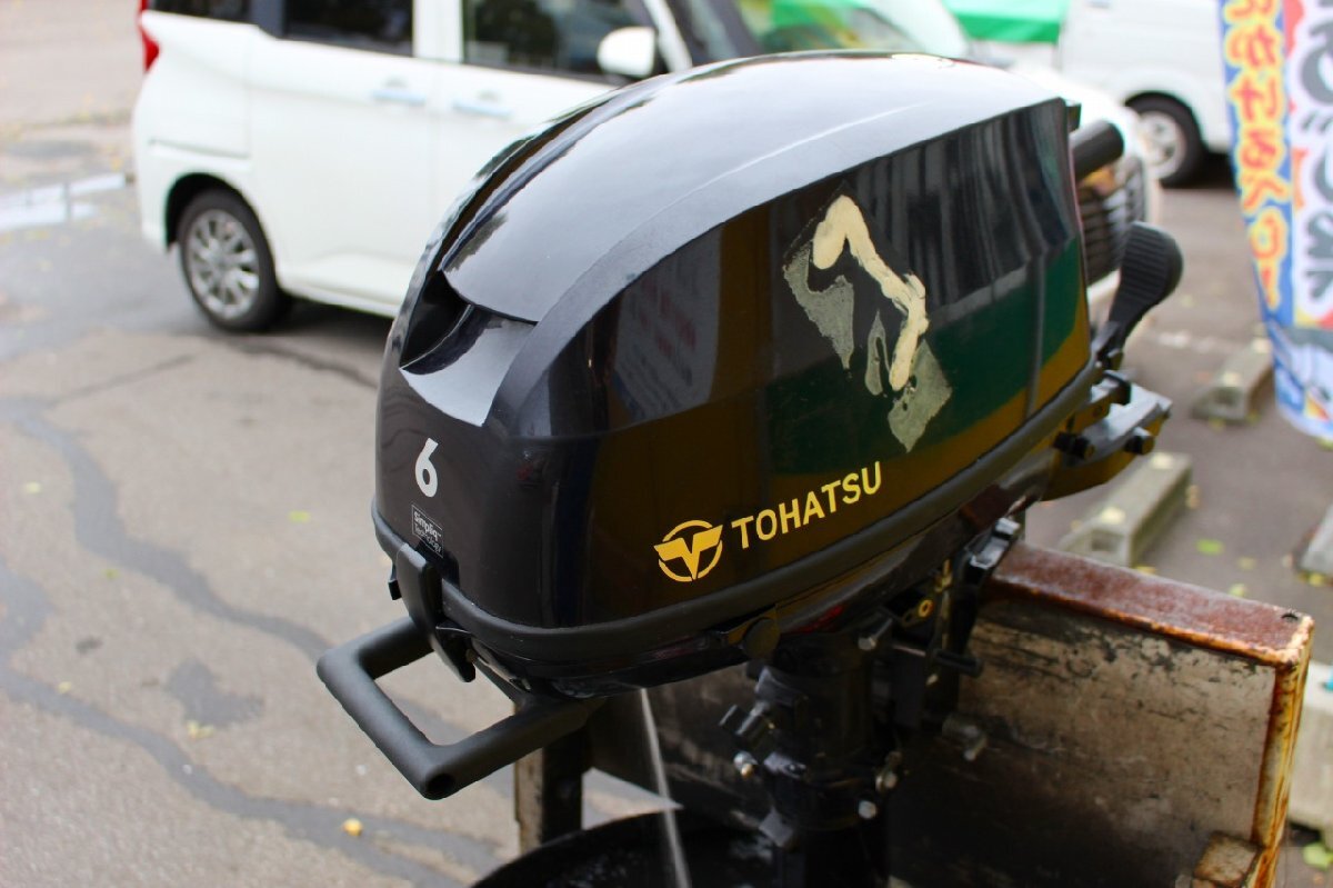 トーハツの4ストローク6馬力エンジンのL足となります。(こちらのエンジンは中古商品です) 足がLタイプにつき、磯船や和船、プレジャーボート等に取り付けて走るのにちょうど良いタイプのエンジンです。 重量もL足モデルは26.0kgと、4ストロークエンジンでは軽い部類で、運搬やエンジンの脱着含めとても楽です。 ※6馬力は重量が30kg未満と持ち運びや脱着が手軽である事が人気(これ以上だと重くて厳しい)。 組み合わせる船次第ですが、スピードが時速で20~23,4kmは出る事等もあり、軽量とスピードの両面から、人気の高いエンジンが4スト6馬力です。 またトーハツ6馬力は、シフトレバーが前側に付いているのが特徴で、バーハンドルとの距離も短く操作がとても楽なエンジンとなります。 燃料に関しては、12Lの外部タンクと燃料ホースを使用。 ※今回出品のこちらのエンジンには、燃料タンクとホース、が付属していません。別途用意が必要ですのでご注意下さい(画像確認下さい) その為、動作チェックには、店在庫のタンクやホースにガソリンを補給し行っています。 ※タンクやホースが必要な方は、別途料金は掛かりますが、店舗に在庫はありますので落札時にお知らせ下さい。同梱にて発送可能です。(中古は現在無い為新品になります) 常連のお客様からの下取りエンジンとなります。(プレジャーボートの補機エンジンとして購入して頂いたエンジンです。) この度、もう少し馬力の大きいエンジンが手に入った為に、こちらのエンジンは下取りする事になりました。 外装含めた全体的な評価としては、年式も新しい事から、中古品ではあるものの、程度はまずまずの部類に入るエンジンかと思います。 (補機目的のエンジンだった為、余り使用はされなかったので、カウル内部もサビ等は少ない感じです。良くサビが出る、シリンダヘッドも綺麗な感じでおススメ出来ます) ※画像確認下さい。(画像No.15~16) 年式も令和3年1月製造モデルですので、現行モデルで新しいエンジンにつき、こちらもポイントは高いかと思います。 足回りは、プロペラ付近含め比較的綺麗な部類で、程度は悪くないと思います。 年式を含めた評価としては、中の上クラスくらいの商品ではないかと思います。(個人主観もあります。画像にて確認お願いします) 今回出品にあたり、ガソリンを補給し水槽にて始動確認行いましたが、正常に動作していました。(画像にて確認下さい。No.1~3参照) 水上がりも問題なく、検水口より冷却水も勢いよく出ています。(画像にて確認お願いします。No.1~3参照下さい) シフトレバーの動作についても確認しましたが、正常にギヤが入りプロペラも回っていました。(前進、後進共に確認しましたが、問題ありませんでした) 画像No.1~3の水槽にてエンジンをかけ、30~40分程様子を見ていましたが、アイドリングも安定しており、通常使用については問題ないエンジンではないかと思います。 ※エンジンはまずまず好調な部類に入ると思います。(お客様も補機エンジンにつき、余り使用されてなかったそうです) 途中で数回エンジンを止め、再度リコイルを引いて再始動のチェックもしましたが、一発始動でふけ上がりも好調でした。 チルドやクランプスクリュの動作状況も好調で、エンジンの固定や締め付けについても、問題は無いと思います。 付属品につきましては、今回は何も無しです。本体のみとなります。(※燃料タンクやホースは付属していませんのでご注意下さい。) マイナスポイントとしては、トップカウル(エンジンカバー)の一部に割れた為と思われる補修痕が見られます。(画像参照下さい。画像No.1、2と最後の画像参照) 表は白いボンドのような物で、裏側はガムテープ?のような素材で補強してあります。(横にした時にぶつけてしまったそうです) 使用については問題ないと思いますが、予めご了承下さい。 また、今回出品のこちらのエンジンには、燃料タンクとホースが付属していません。(ホースとタンクは次のエンジンに使用されるとの事で、本体のみの下取りとなった為) ご使用されるには、別途用意が必要ですので、こちらについてもご確認よろしくお願いします。 ※店舗に新品在庫はありますので、必要な方は落札時にお知らせ下さい。(ただし、この部分は別途料金が必要となります) 以上ですが、何か不明点がありましたら、入札前に必ず質問の方よろしくお願いします。 現状、エンジンについては特に不具合もなく、年式も新しく、程度も良い部類で問題なく使用出来るかと思いますが、売り切りの格安スタートとしますので、ノークレームにてよろしくお願いします。 ※こちらのエンジンは現状の簡易的な確認、作動チェックのみでの出品商品となります。 チェック時に見落としていた部分があるかもしれませんが、その点はご了承願います。 ※商品落札後のアフターにつきましては基本的に当方ではお受けできませんのでご了承ください。 ※商品は外部タンク内のガソリンや、エン
