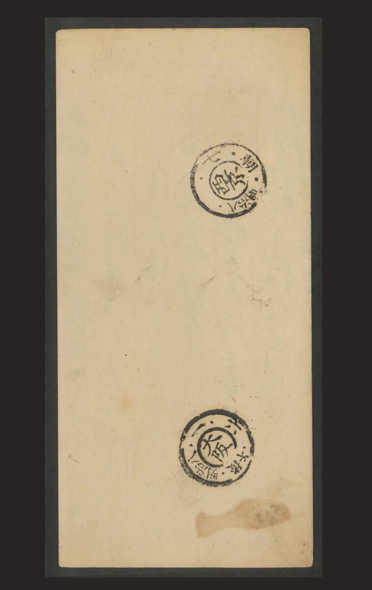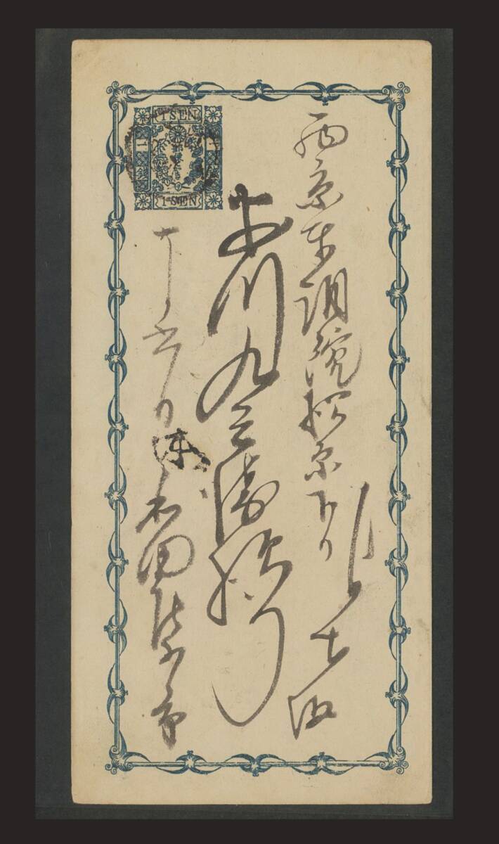 日本 二つ折り葉書 脇無1銭ヲ 本 二重丸型日付印 大阪8.1.6→二重丸型日付印 西京 シミ有