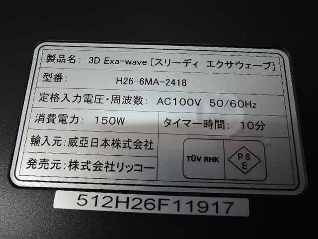 | リッコー トレーニング機器 3D Exa-wave 3Dエクサウェーブ H26-6MA-2418 ストレッチゴム欠品 通電確認済/ジャンク品 | ||||