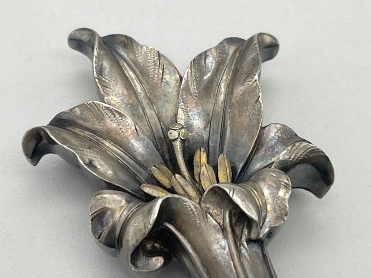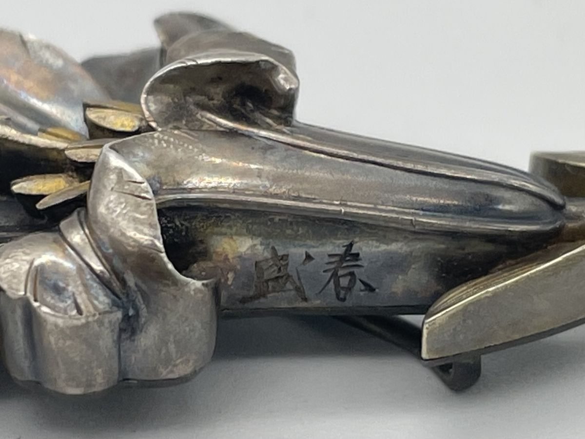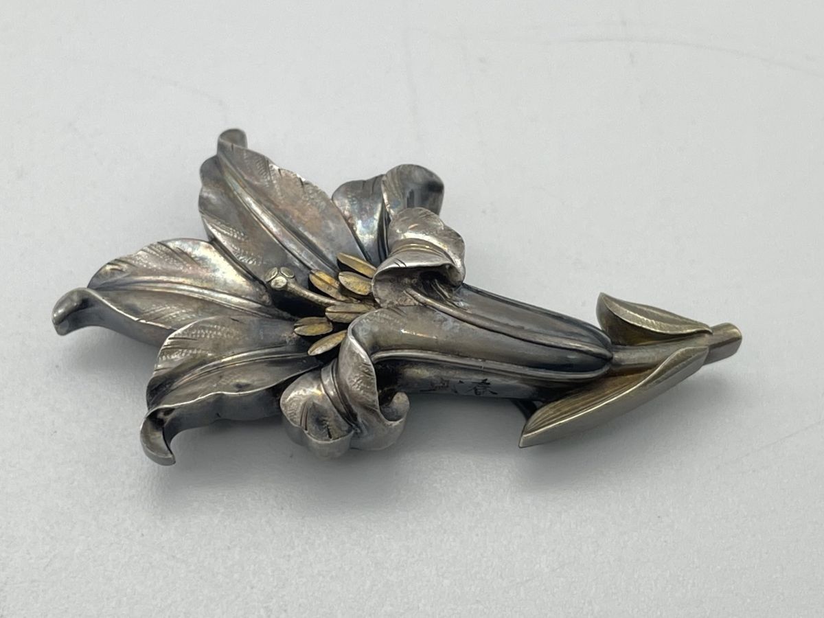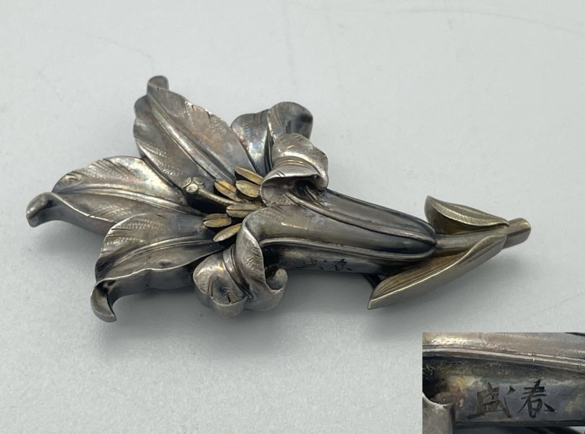 【婀】帯留め 盛春作 百合 ユリ 在銘 帯締め 花 和装 小物 J20KA6