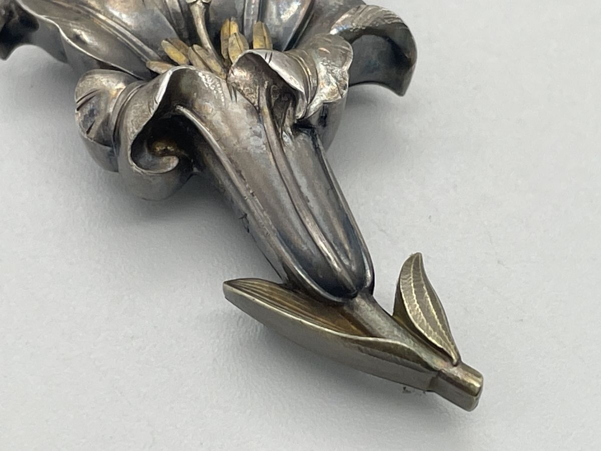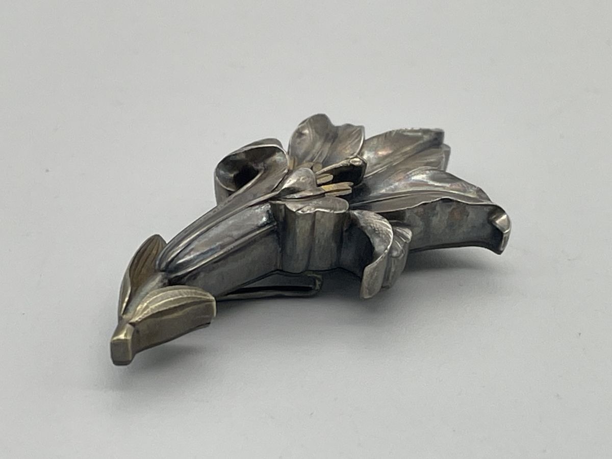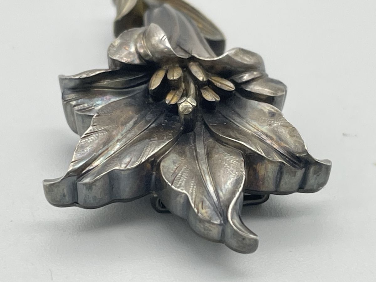 【婀】帯留め 盛春作 百合 ユリ 在銘 帯締め 花 和装 小物 J20KA6