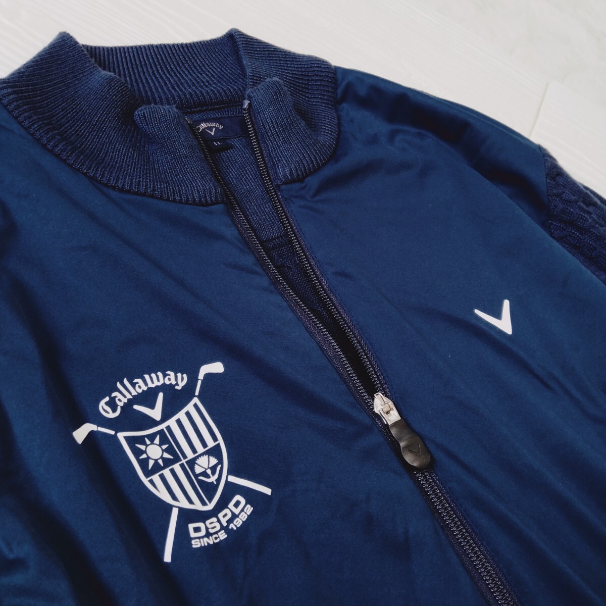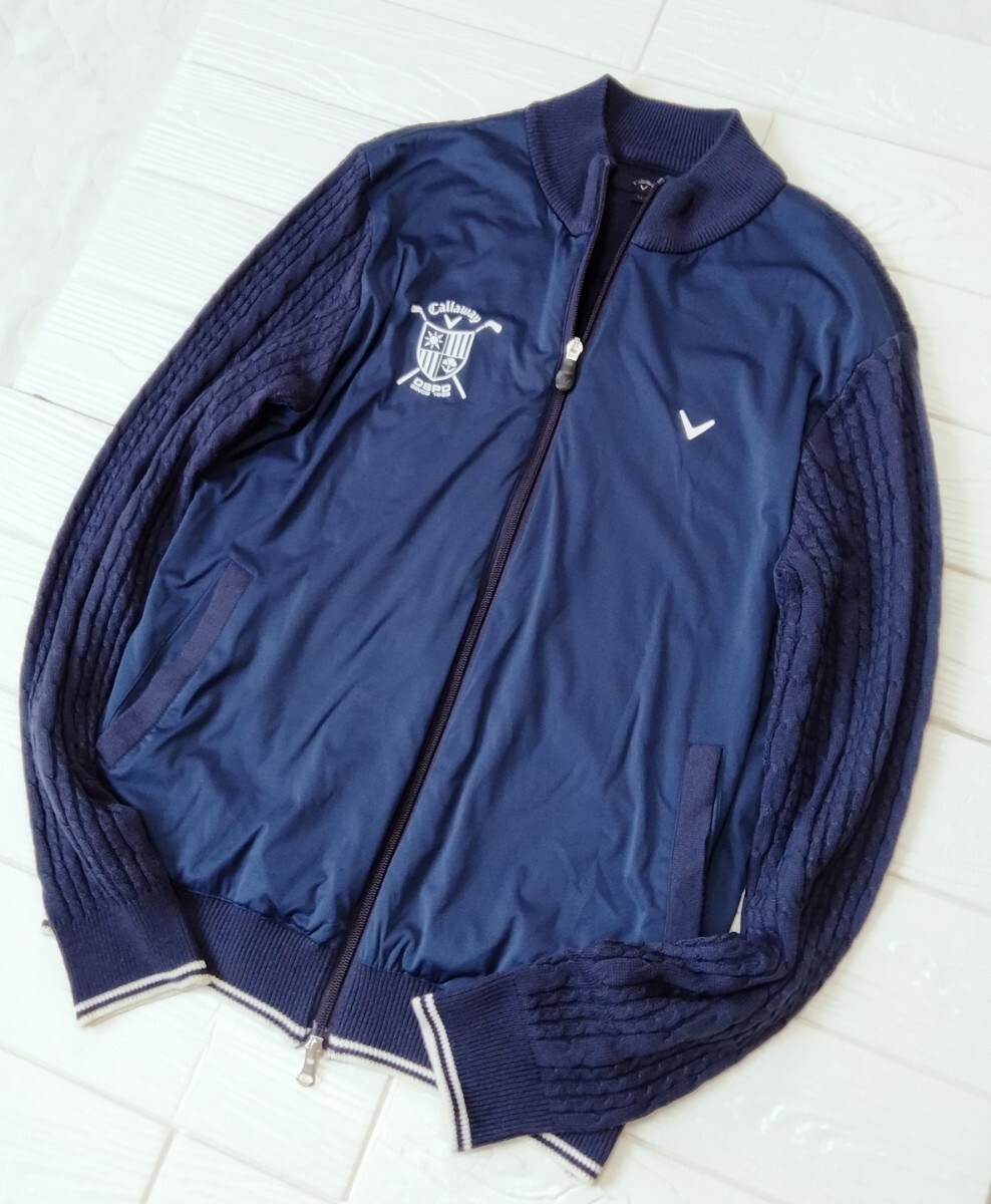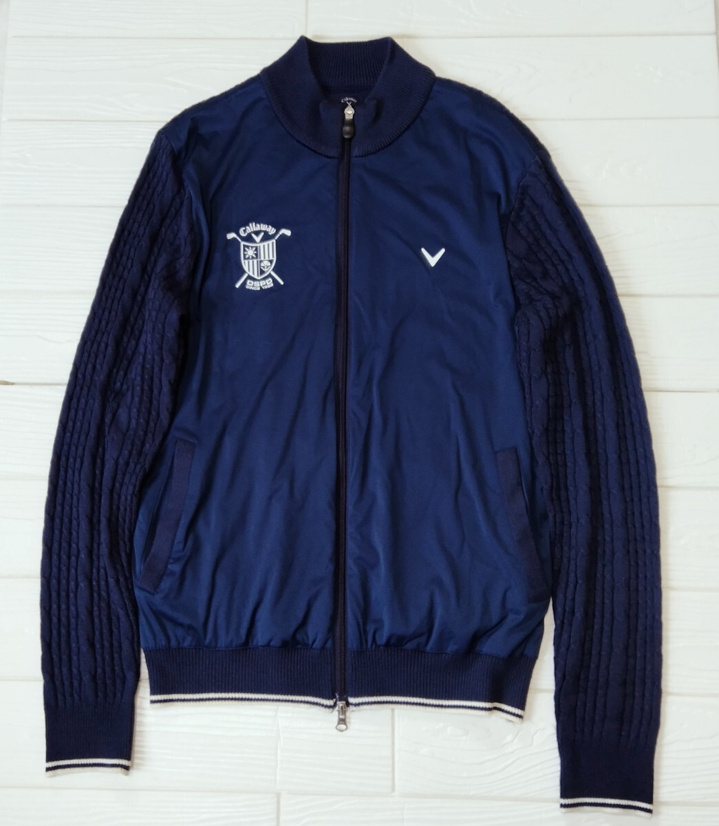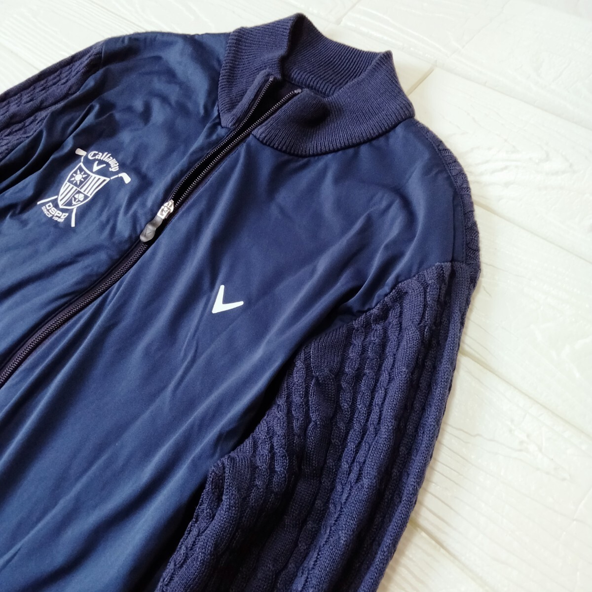 キャロウェイ*大きいサイズLL*切替ジップアップブルゾン*ケーブルニット×ナイロン*紺*ジャンパー*Callaway*ゴルフウェア*メンズ