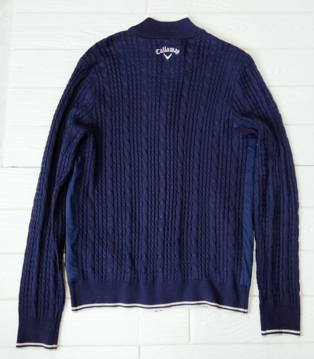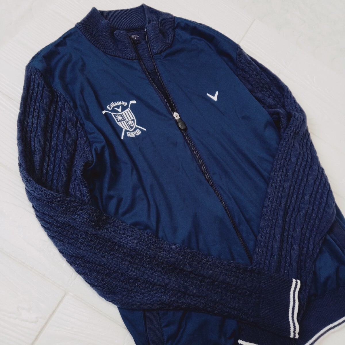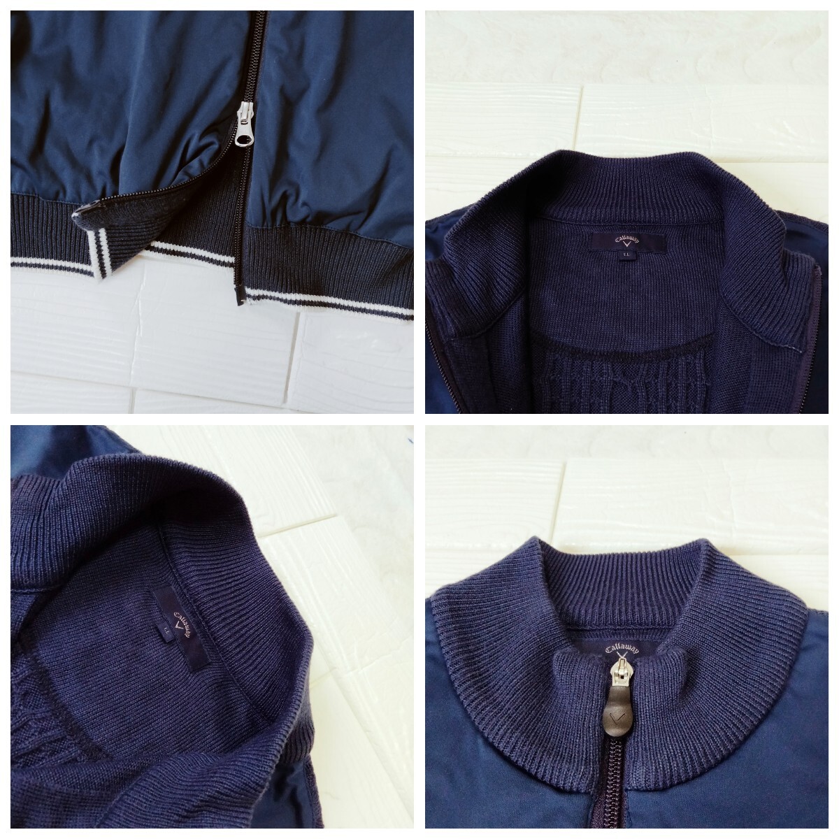 キャロウェイ*大きいサイズLL*切替ジップアップブルゾン*ケーブルニット×ナイロン*紺*ジャンパー*Callaway*ゴルフウェア*メンズ