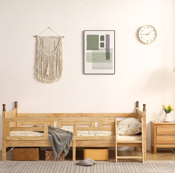 • 1.【 シンプルなデザイン】高品質な木材を厳選し、シンプルで特色を失わず、独立性と実用性に優れており、自然に親しむ色も空間格調に明るく優雅で、柔らかな印象を与え、寝室に温かく心地よい雰囲気をもたらし、大人も子供もより安心な睡眠を与えます。