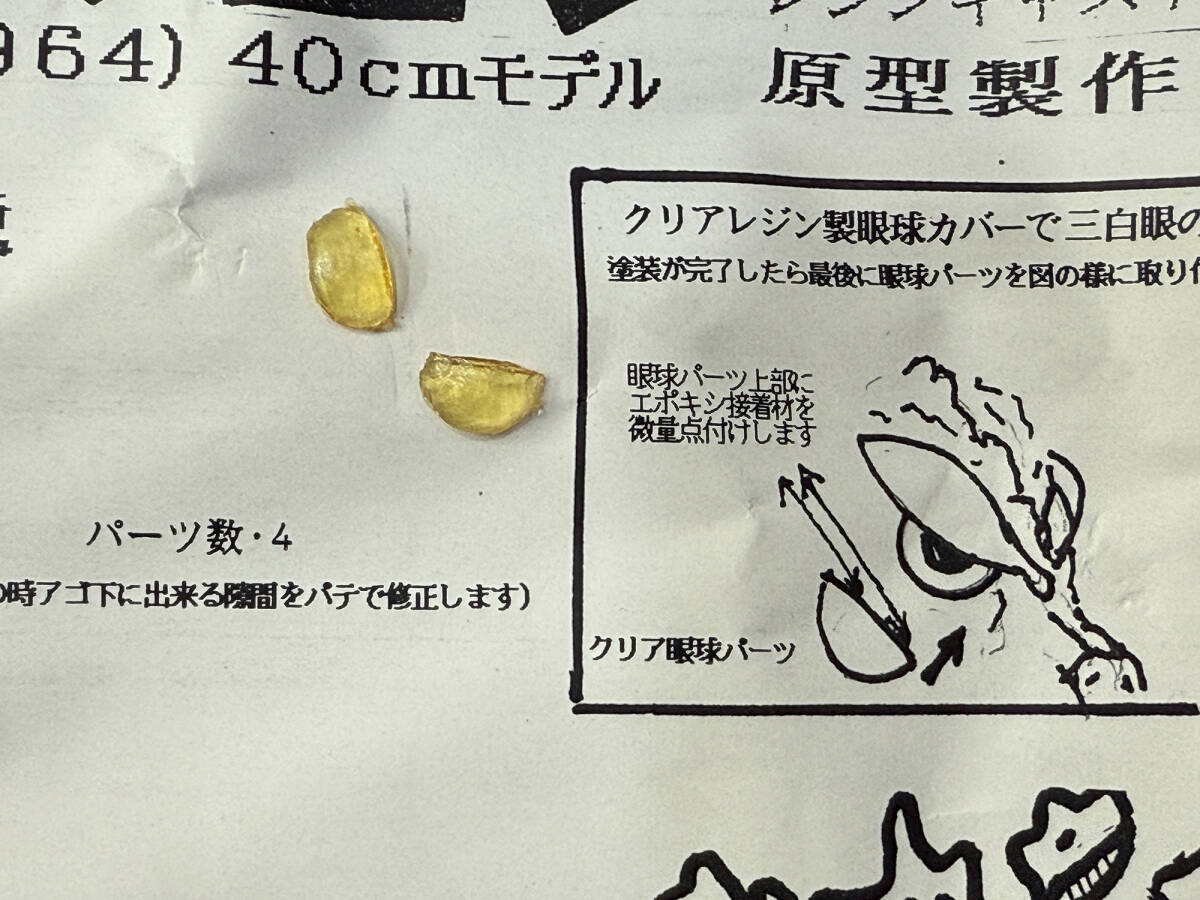 クリアレジン製の眼球カバーパーツがついているのですが、変色して茶色くなっています。写真を参照してご検討ください。
